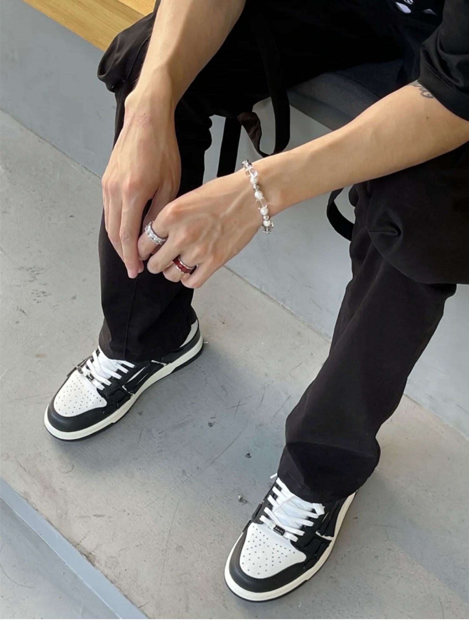2024Ss High-Quality Bone Shoes with Lychee Pattern Top-Layer Cowhide, Low-Top High-Street Style Casual Couple Sneakers