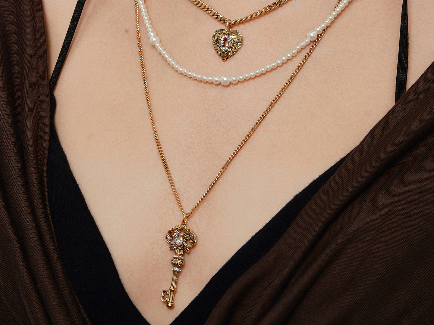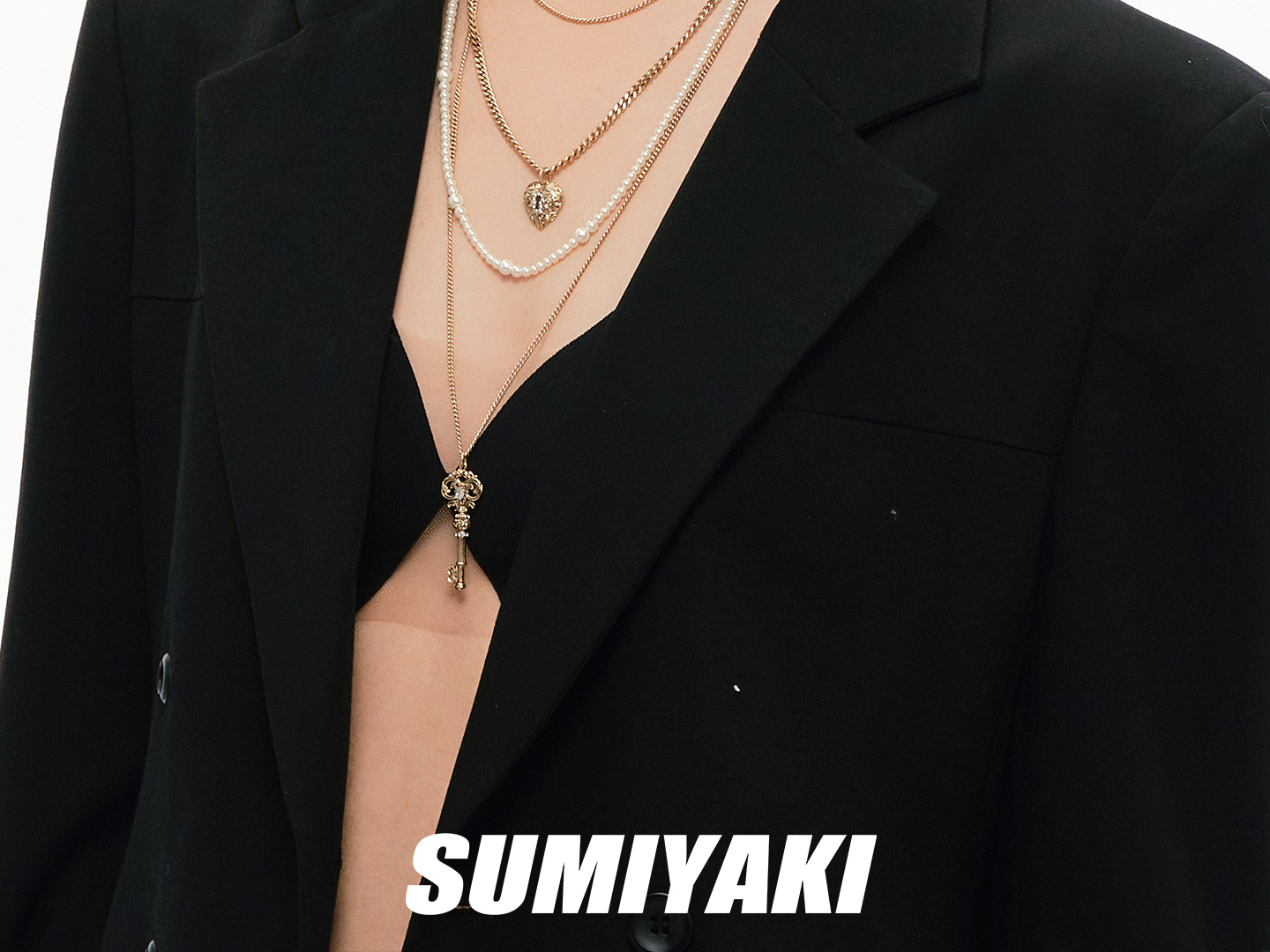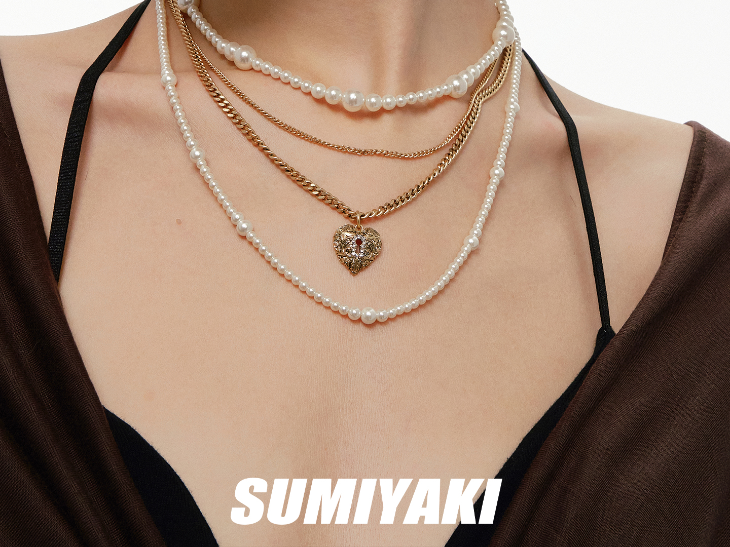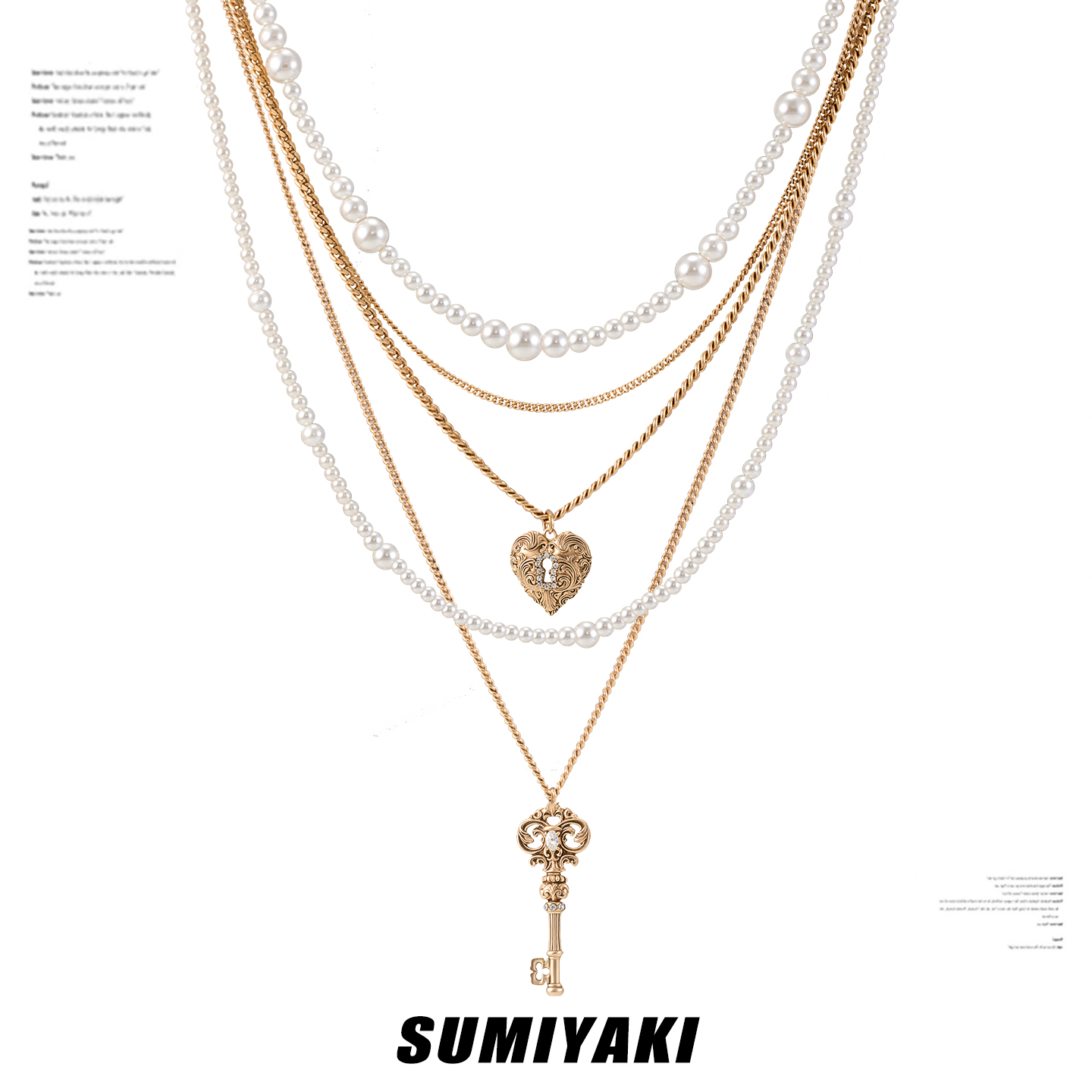Sumiyaki Retro Love Lock Series Multi-Layered Pearl Necklace Niche Sweater Chain Detachable