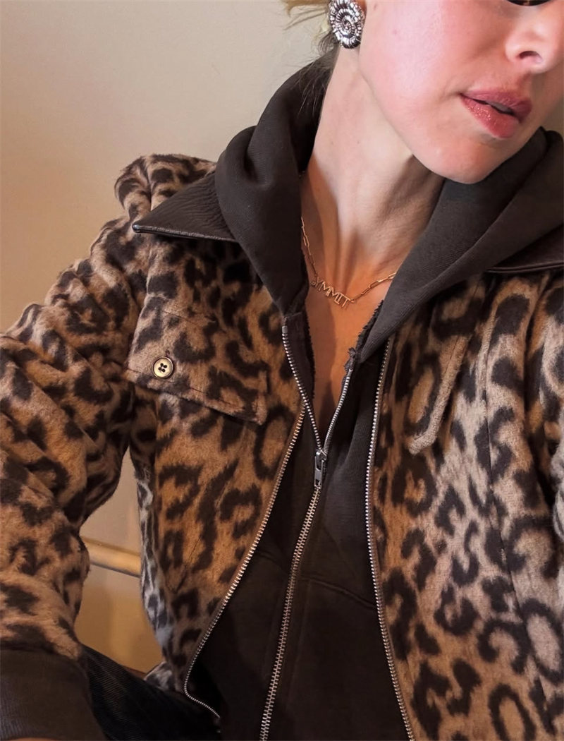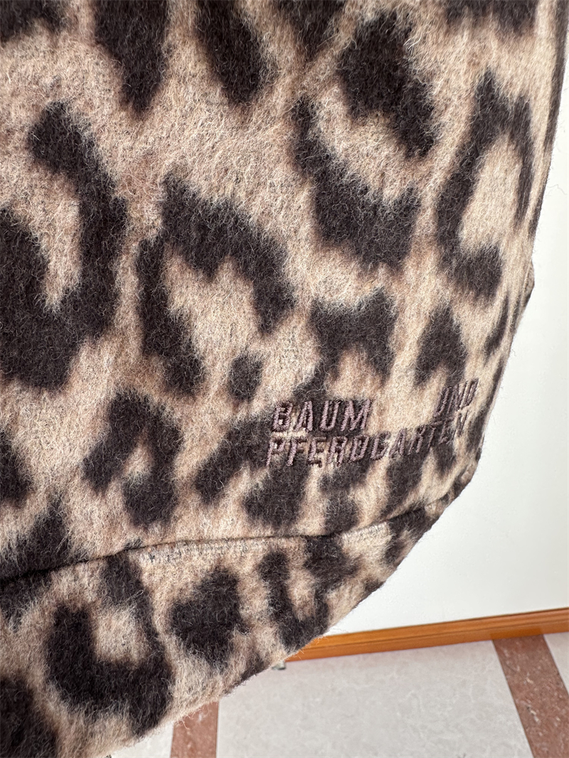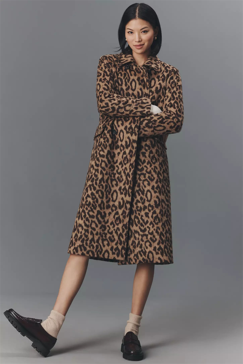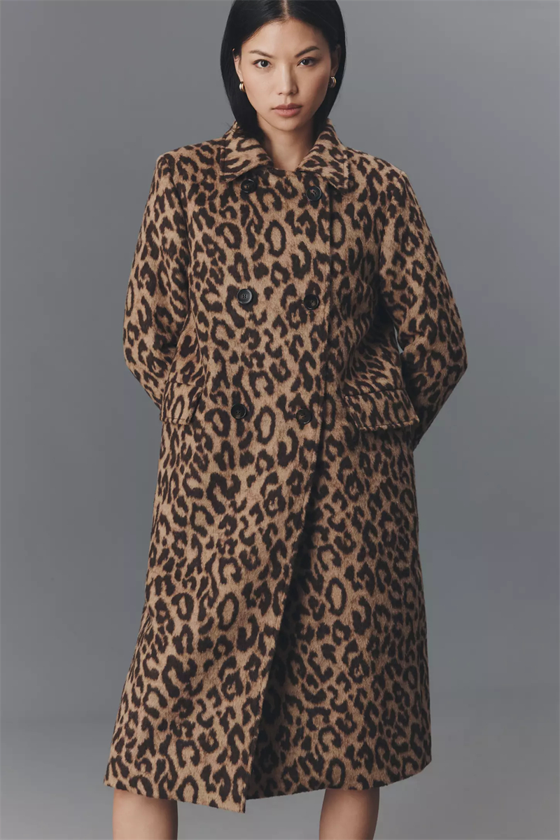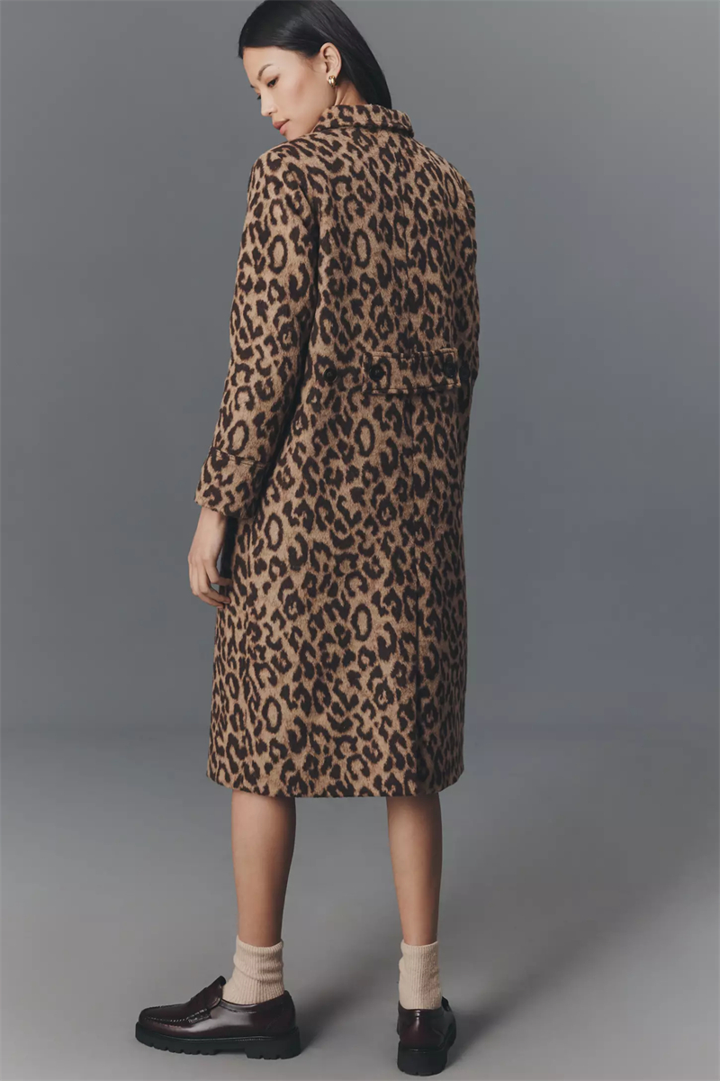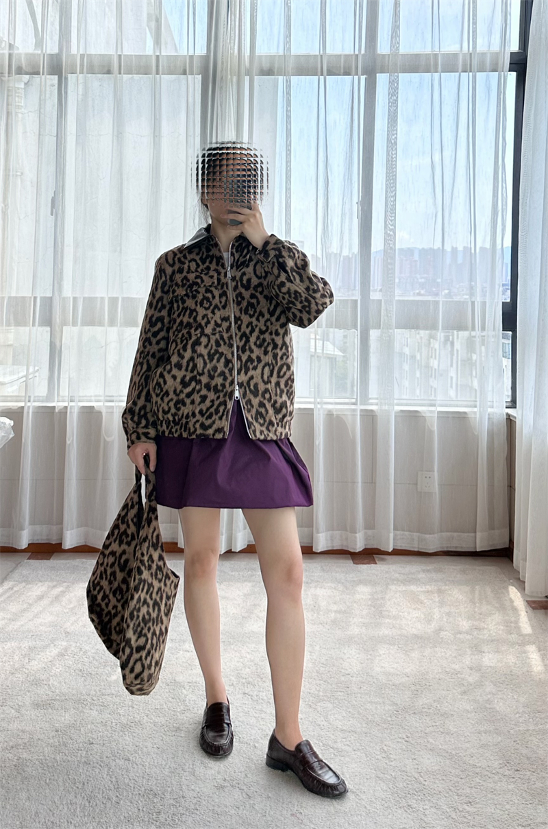 Trendy Aunt Nordic Bup Leopard Print Woolen Leather Patchwork Zipper Jacket/Double-Breasted Coat