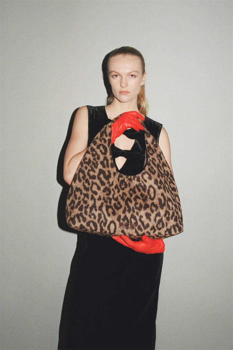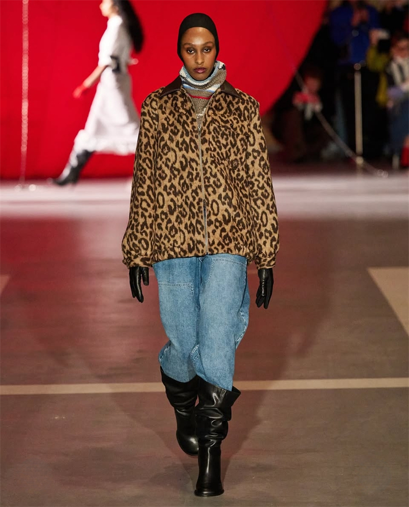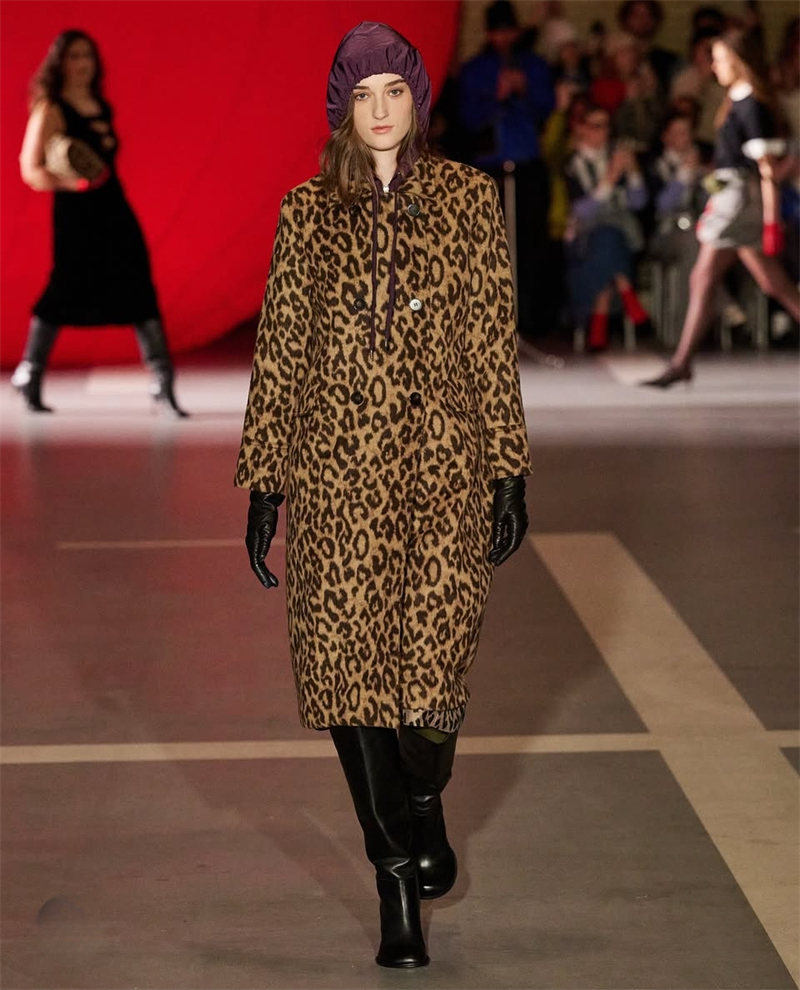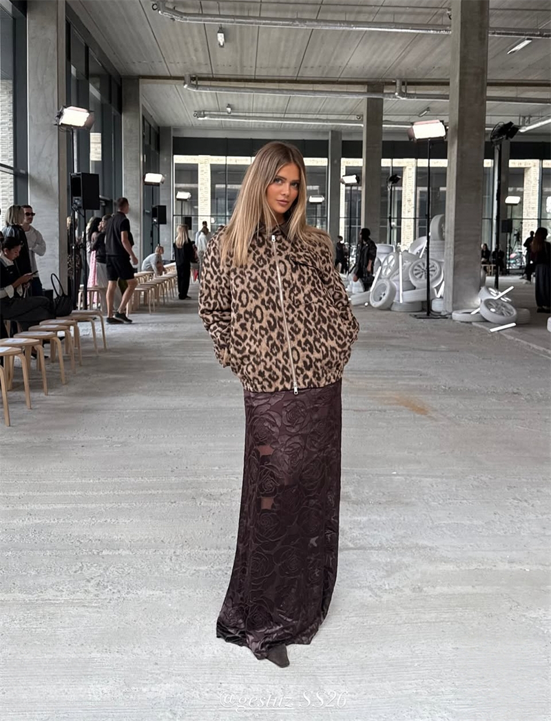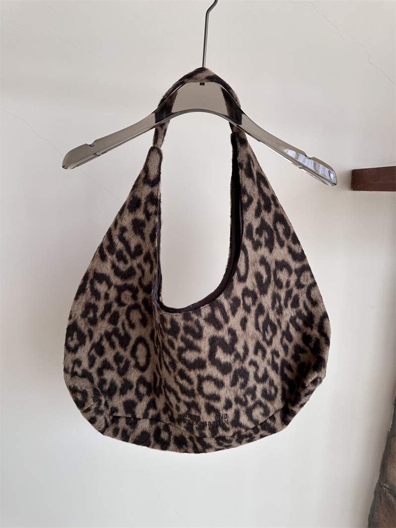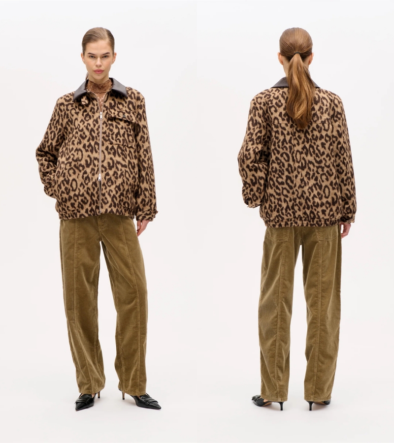 Trendy Aunt Nordic Bup Leopard Print Woolen Leather Patchwork Zipper Jacket/Double-Breasted Coat