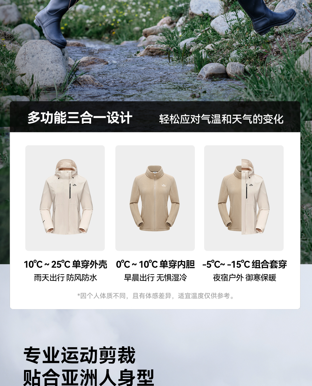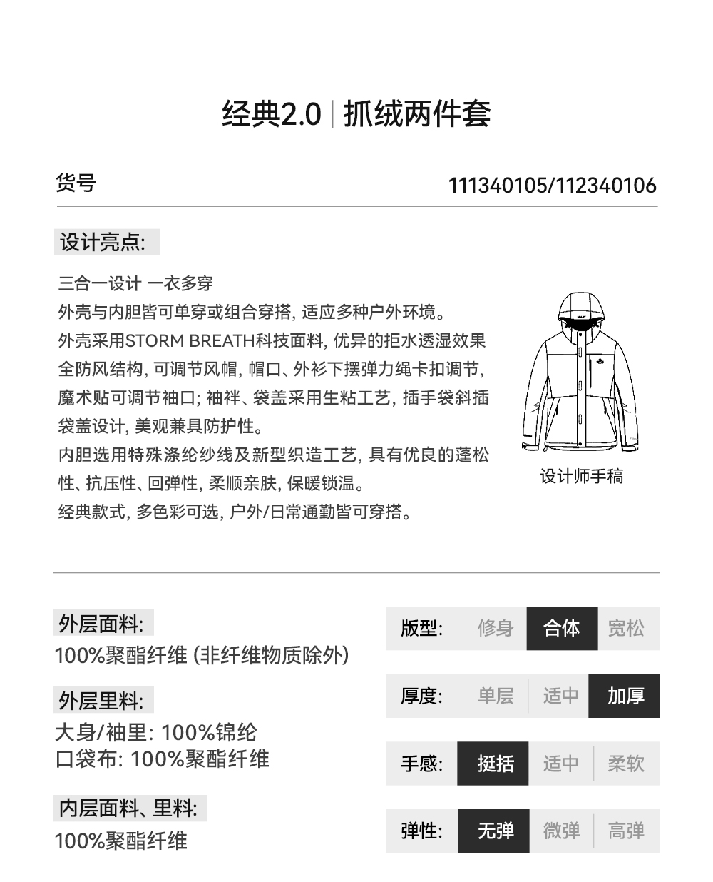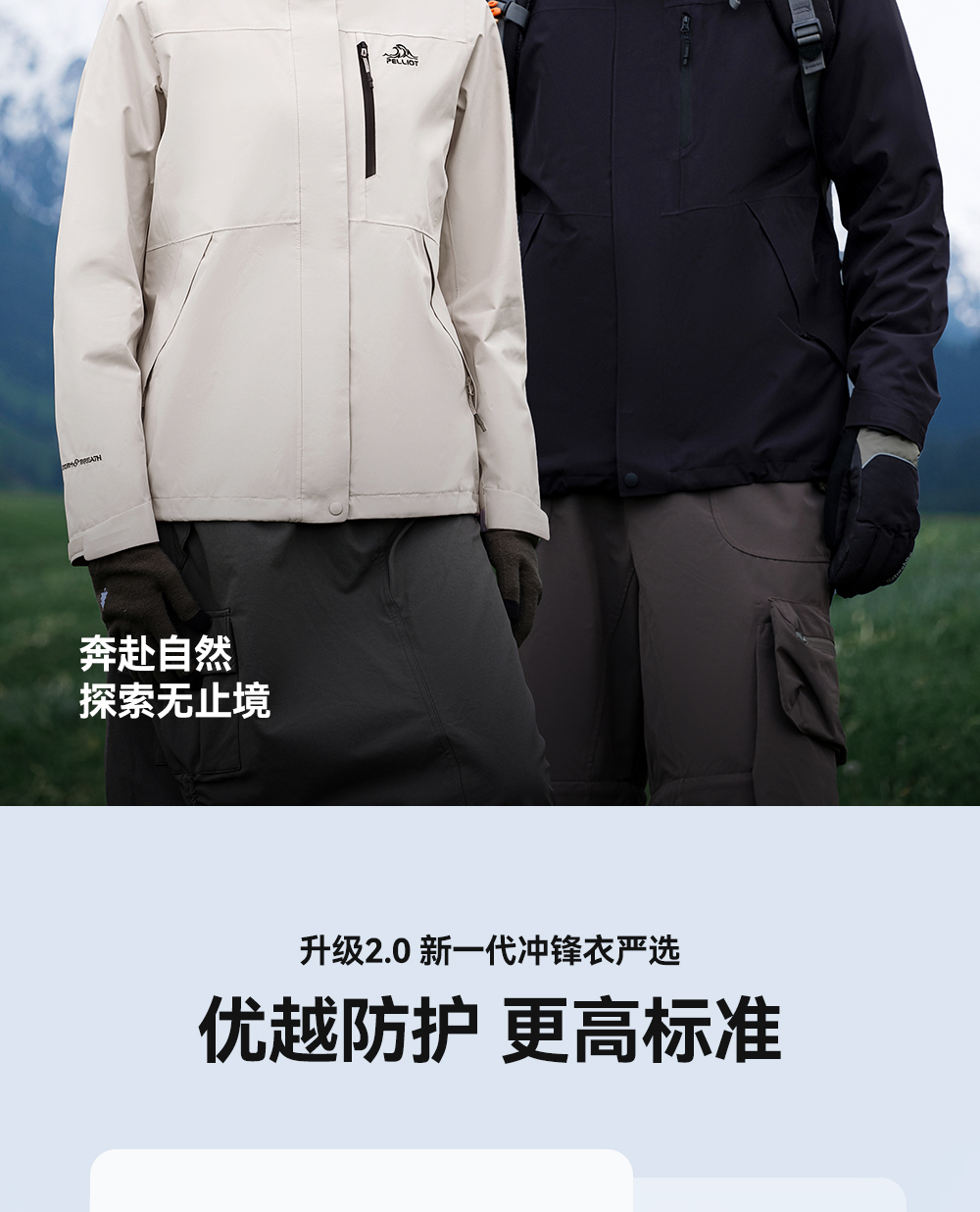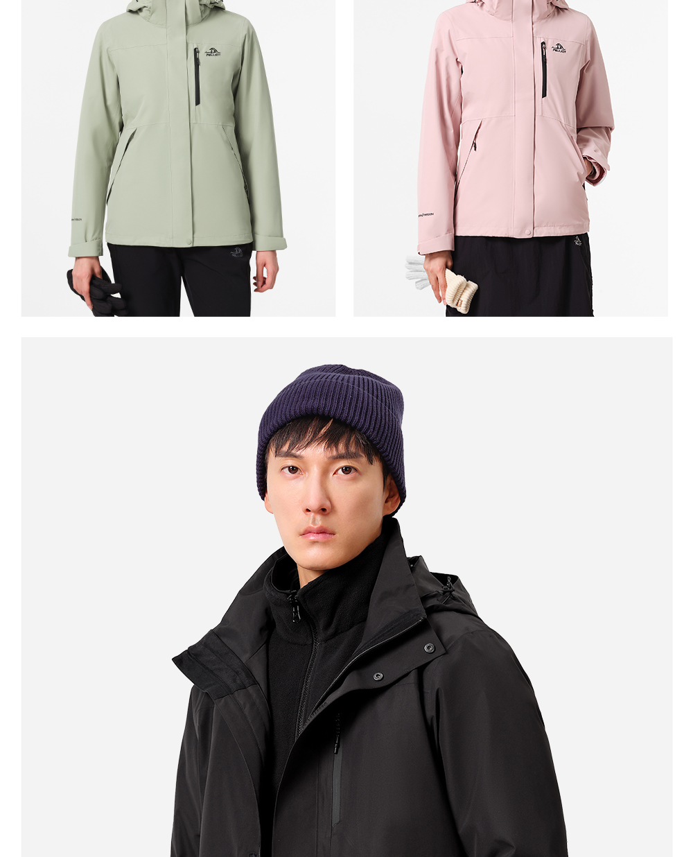 [Classic 2.0] Pelliot Outdoor Fleece-Lined Jacket for Men, Winter 3-in-1 Waterproof Mountaineering Jacket for Women