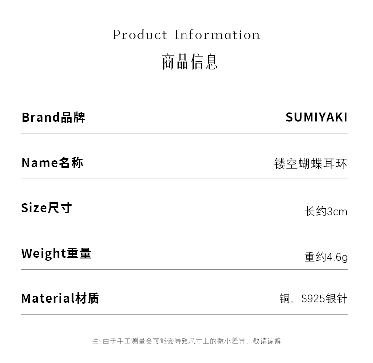 Sumiyaki Butterfly Bone·Symbiosis Series Hollow Butterfly Earrings High-End Gold Color S925 Silver Needle Earrings for Women