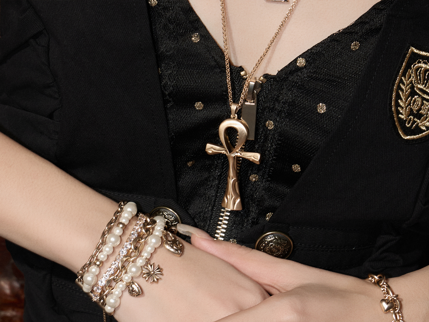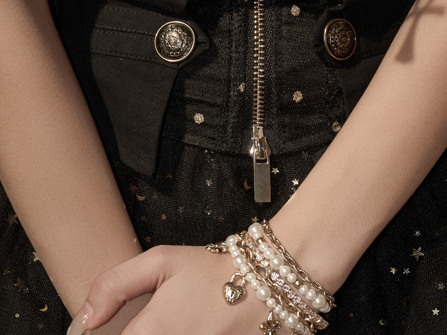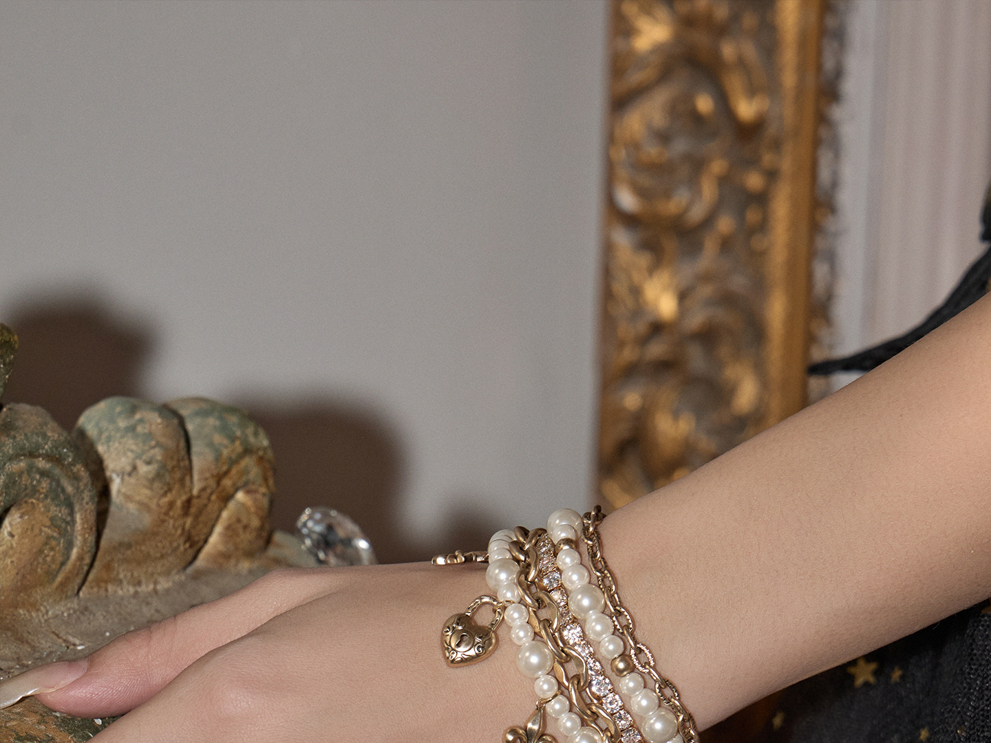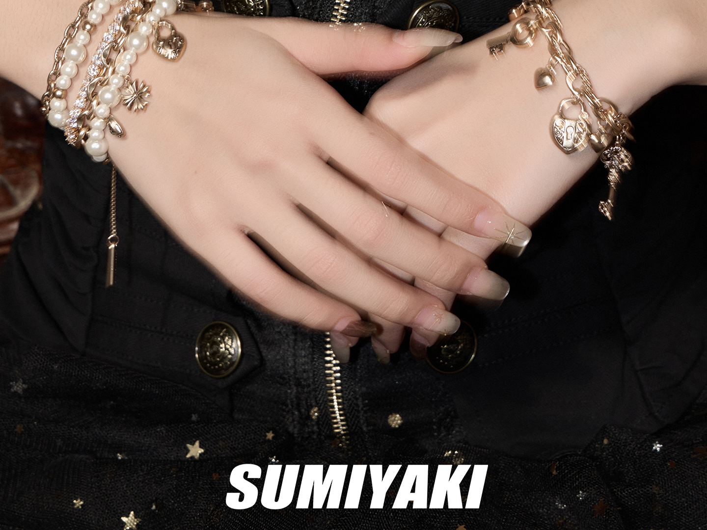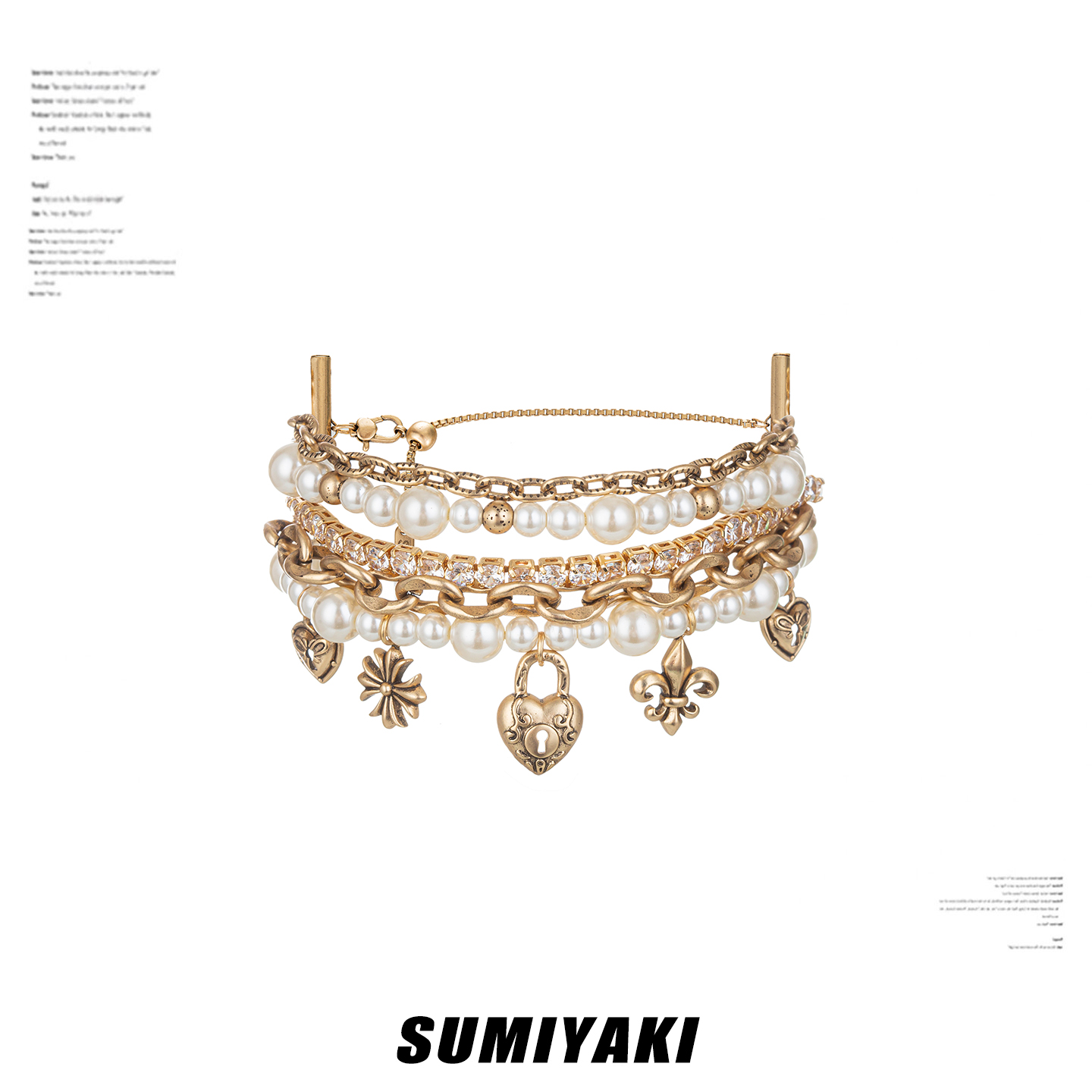 Sumiyaki Love Lock Series Pearl Heart Pendant Bracelet Multi-Layered Stackable Bracelet