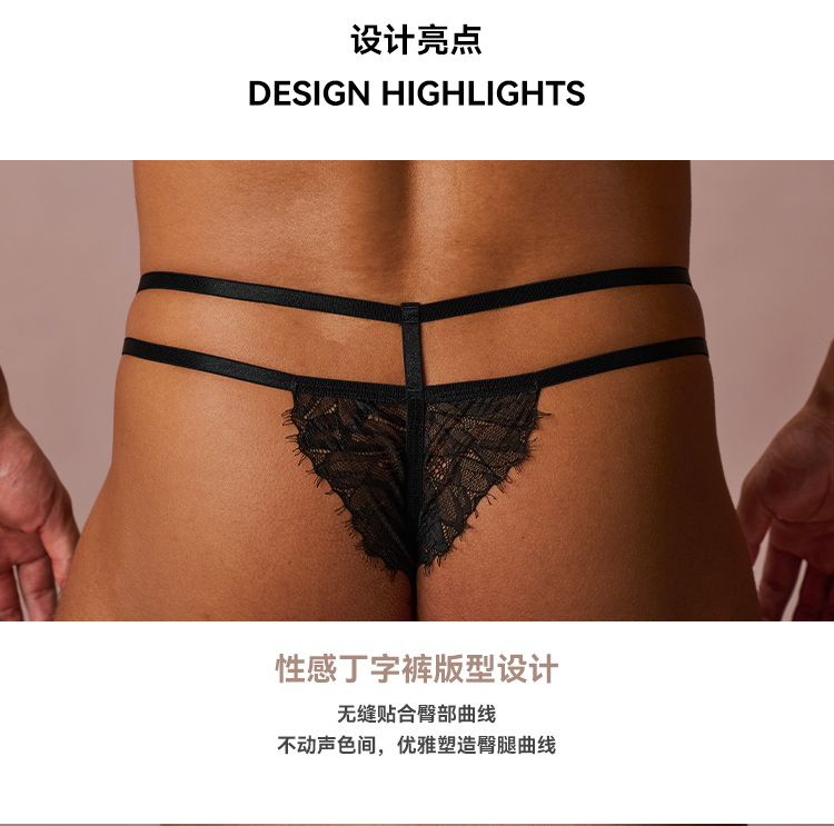 Half-Beast Style "Lace Marking" Series Low-Rise Sexy Thong with Single Strap, Large Lace Trim, Men's Underwear with Hollow Design