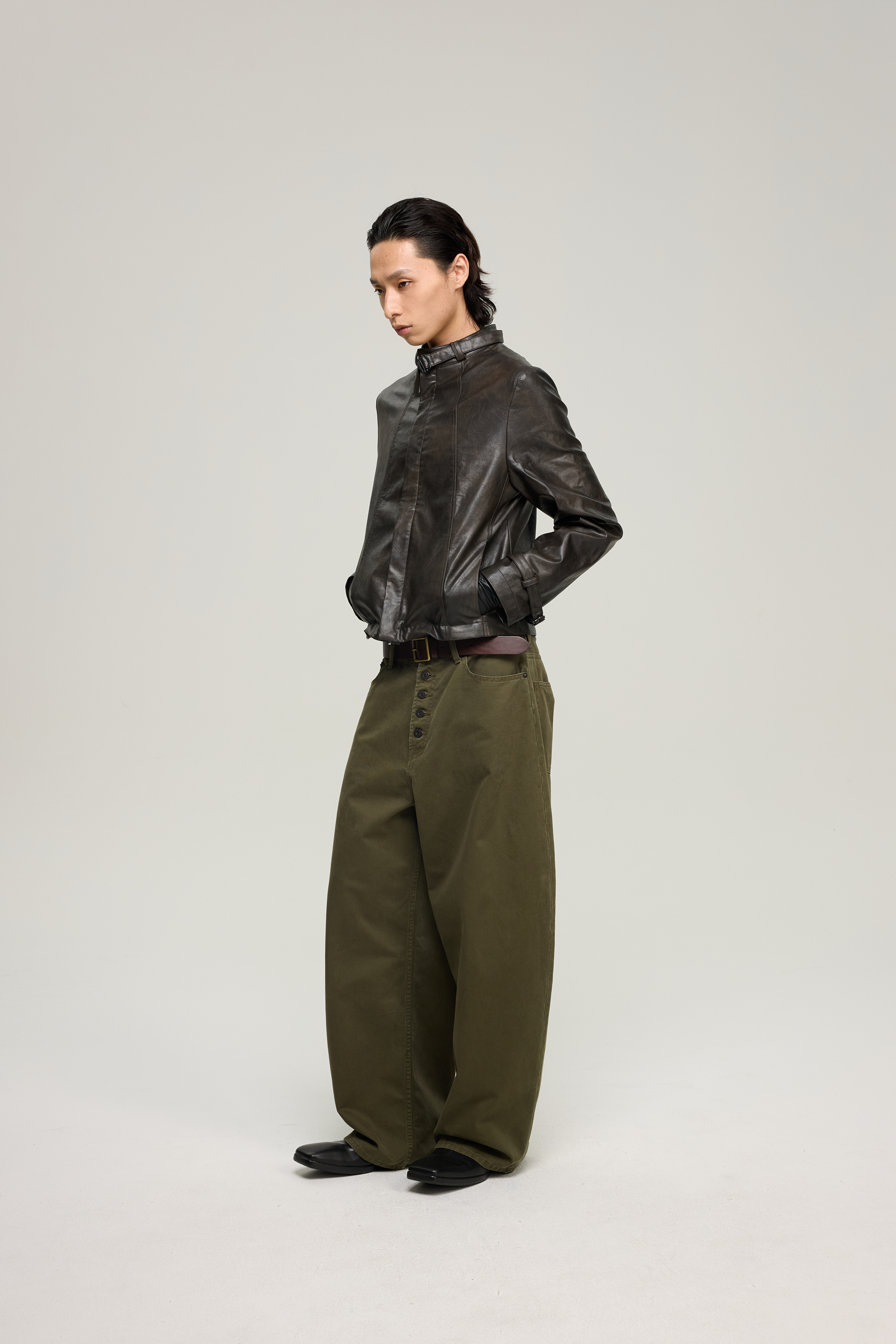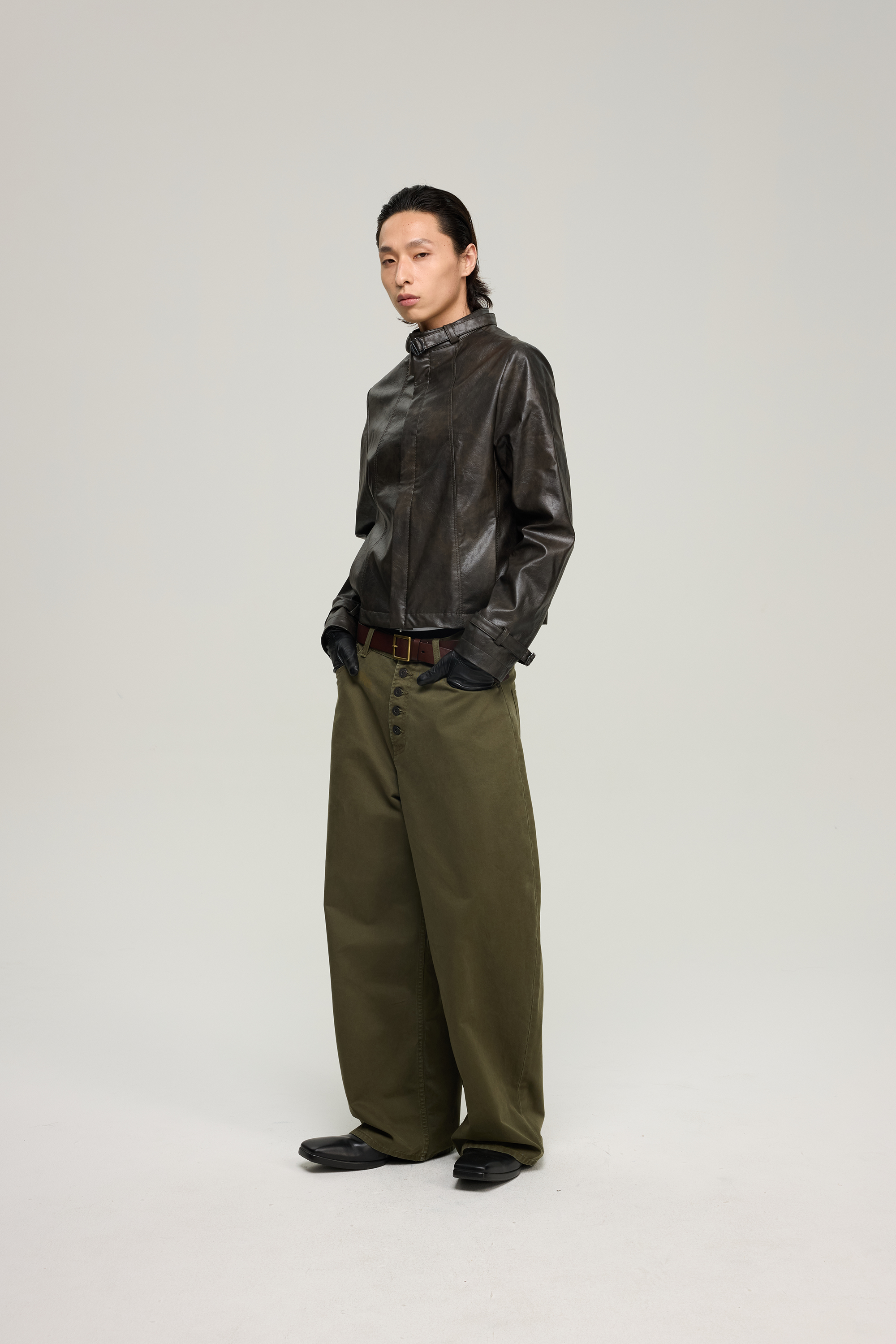 Insait 25Aw Knights Vintage Leather Jacket Short Eco-Friendly Leather Jacket