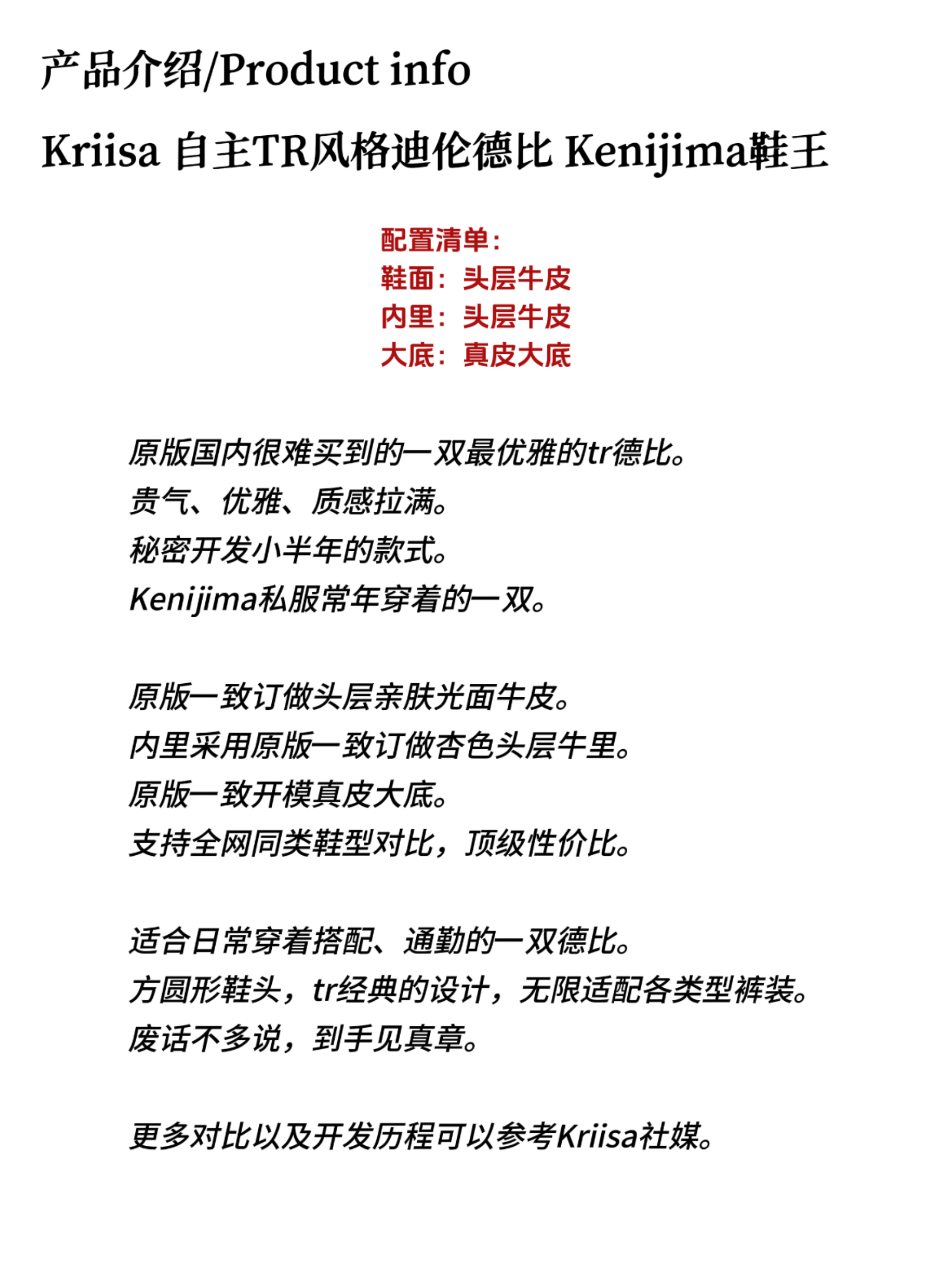 Kriisa "In Stock" Kenijima Shoe King Independent Tr Style Dylan Derby Elegant and Simple Commuting