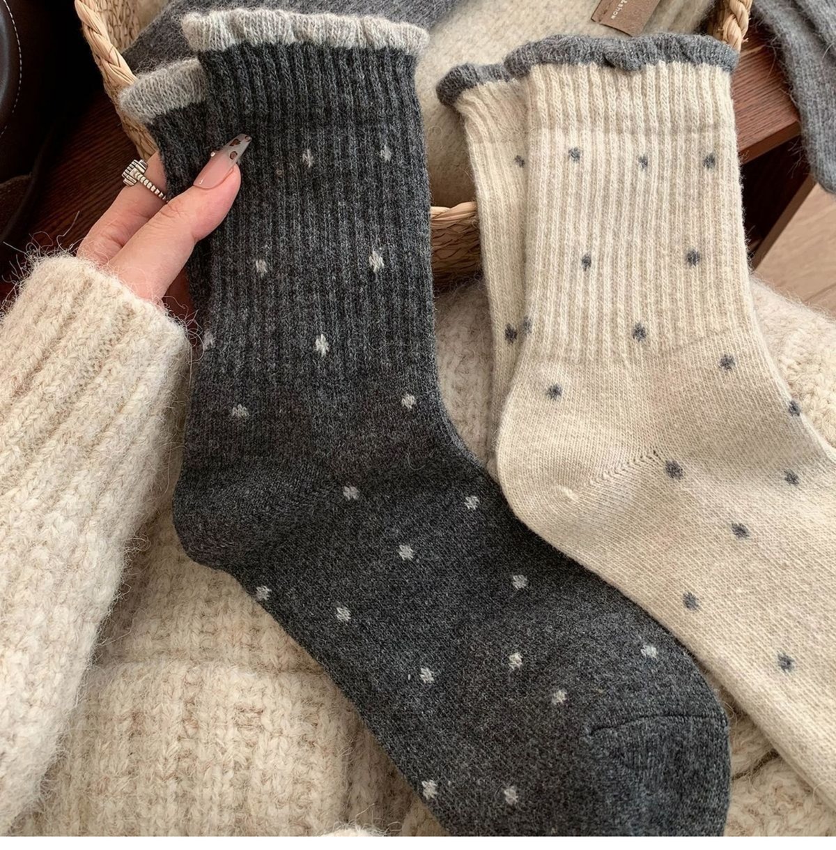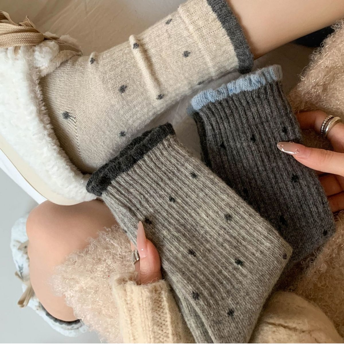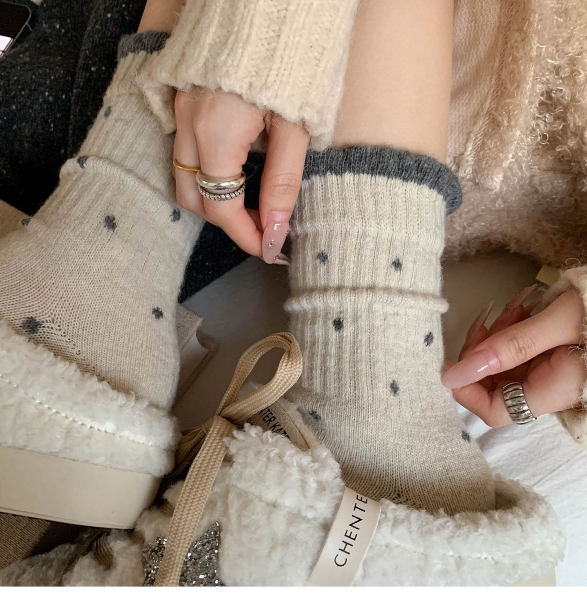 Autumn and Winter Polka Dot Gentle Lace Versatile Long Wide-Mouthed Outerwear Socks for Women Retro Dopamine Mid-Calf Socks
