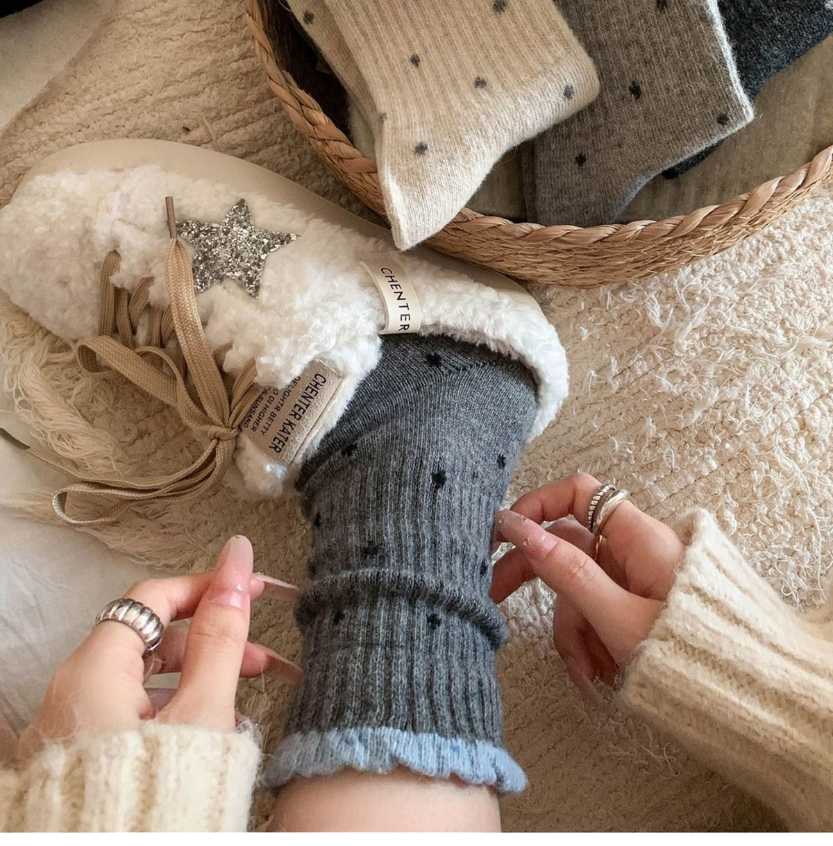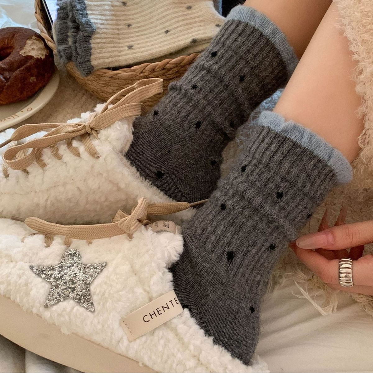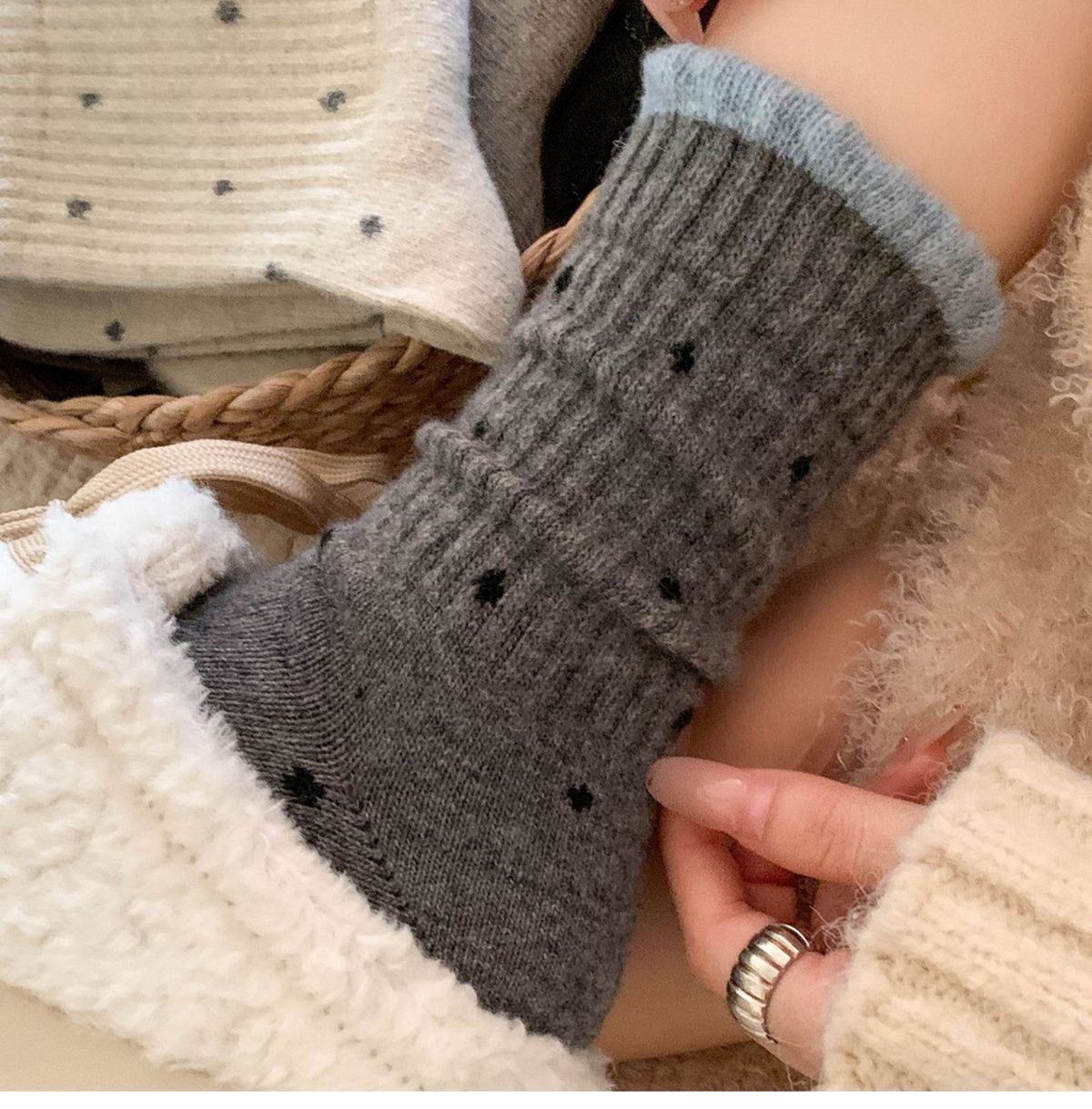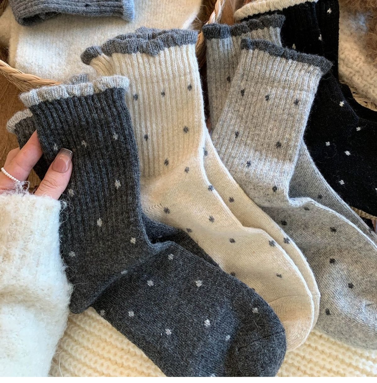 Autumn and Winter Polka Dot Gentle Lace Versatile Long Wide-Mouthed Outerwear Socks for Women Retro Dopamine Mid-Calf Socks