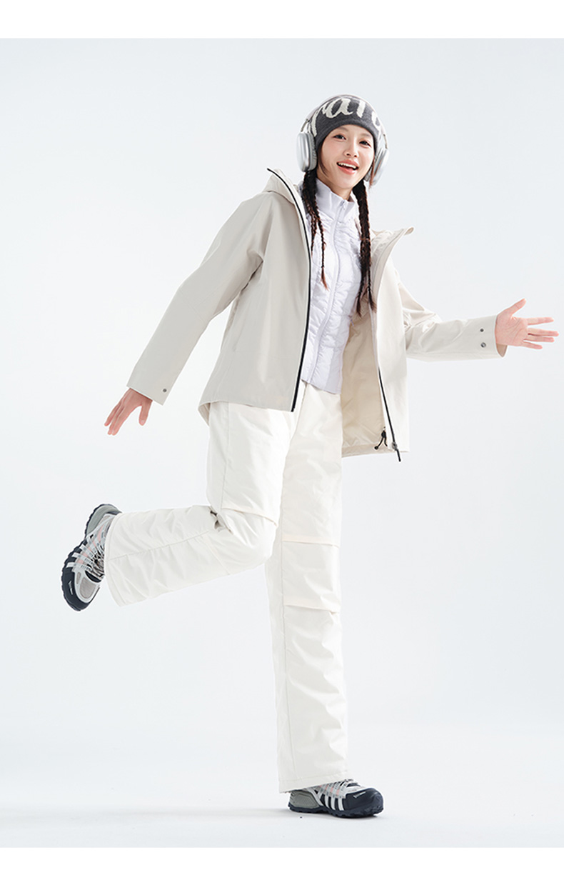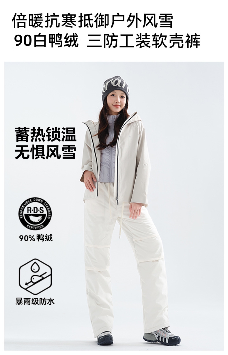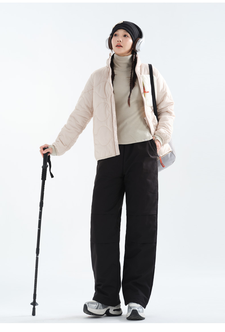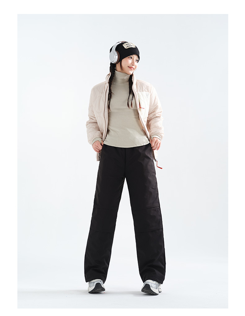 Catman Three-Proof Softshell Outdoor Pants for Women, Suitable for Autumn and Winter, Thickened Workwear down Pants, White Loose Straight-Leg Thermal Pants