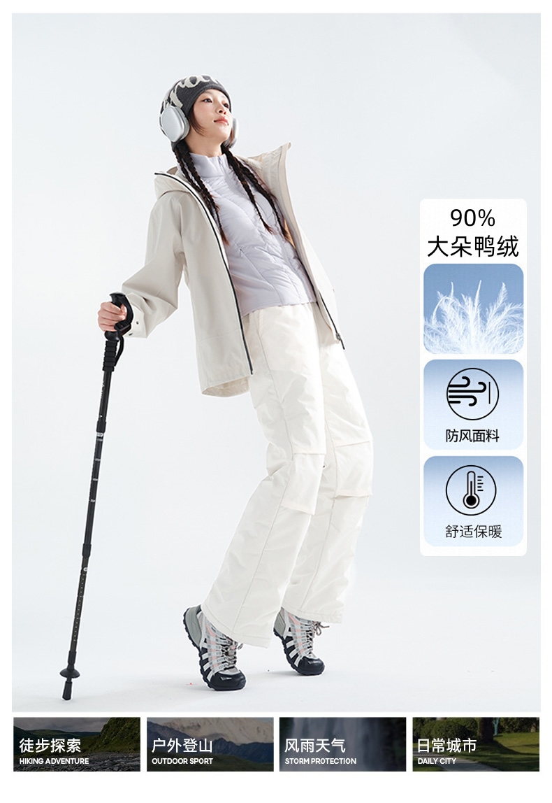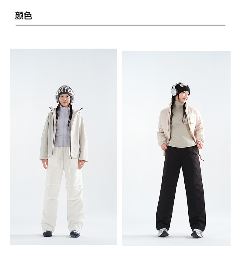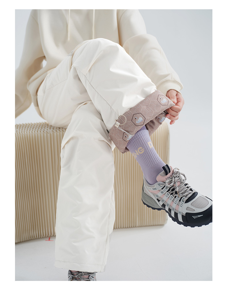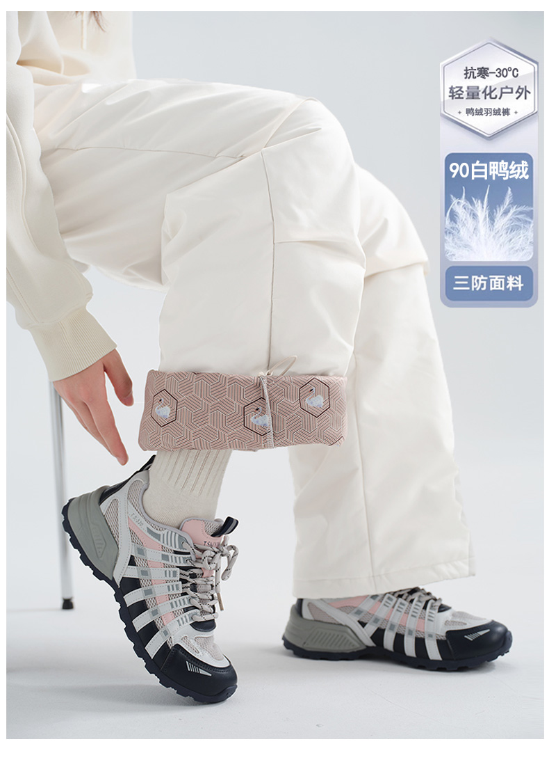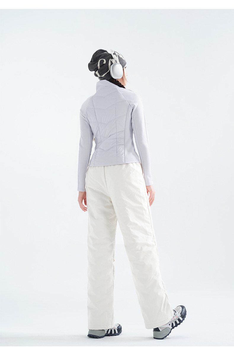 Catman Three-Proof Softshell Outdoor Pants for Women, Suitable for Autumn and Winter, Thickened Workwear down Pants, White Loose Straight-Leg Thermal Pants