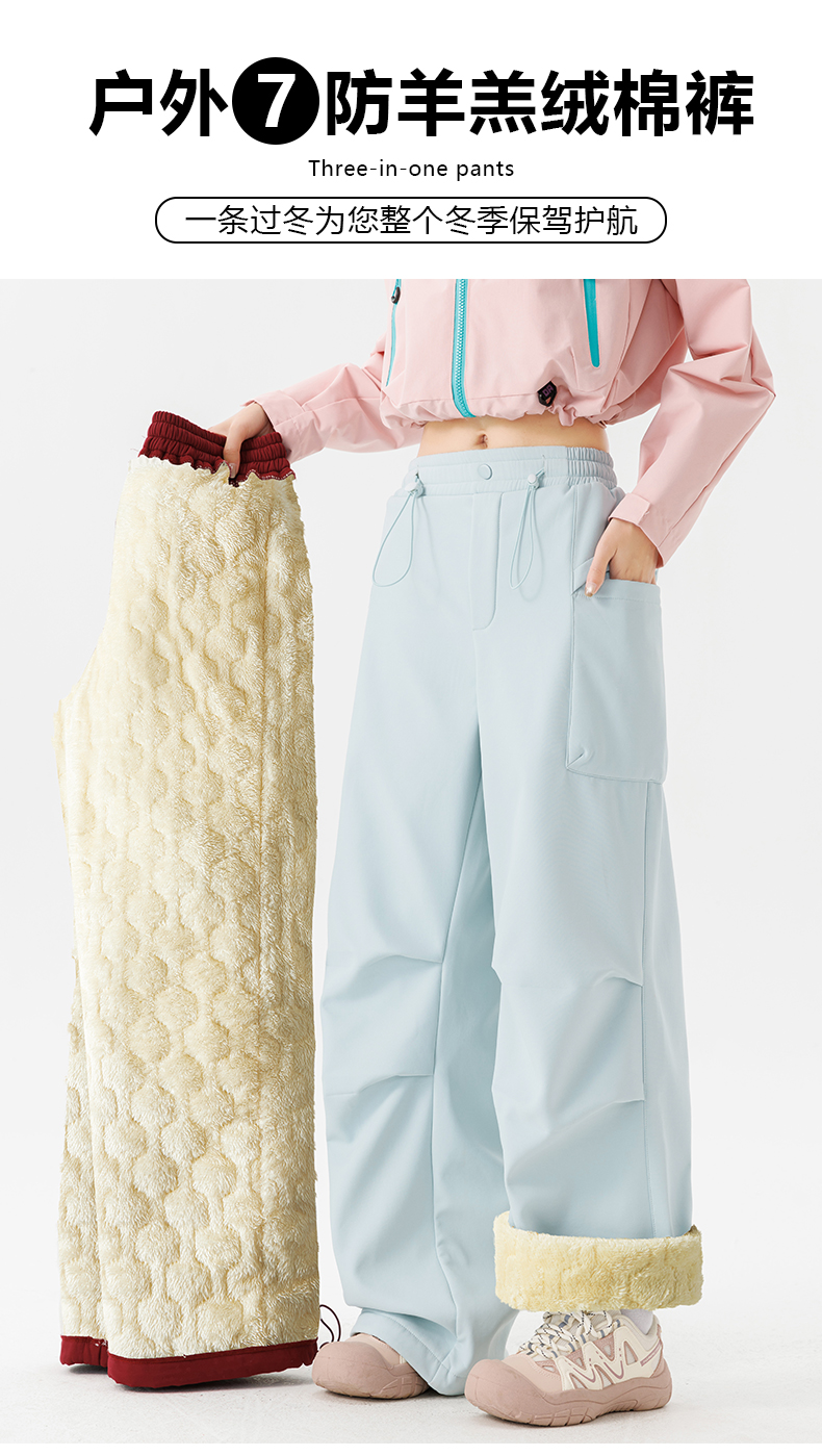 Wassup Cmkpo Lamb Wool Cotton Pants for Women, Suitable for Northeast China, Harbin, and Snow Country Tourism, Windproof, Waterproof, Thickened Outdoor Pants