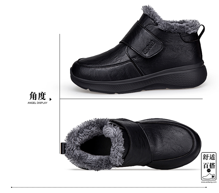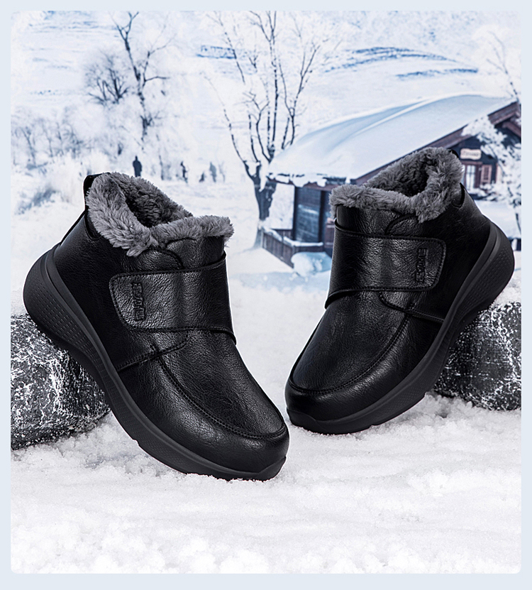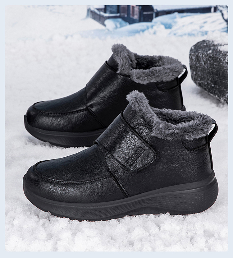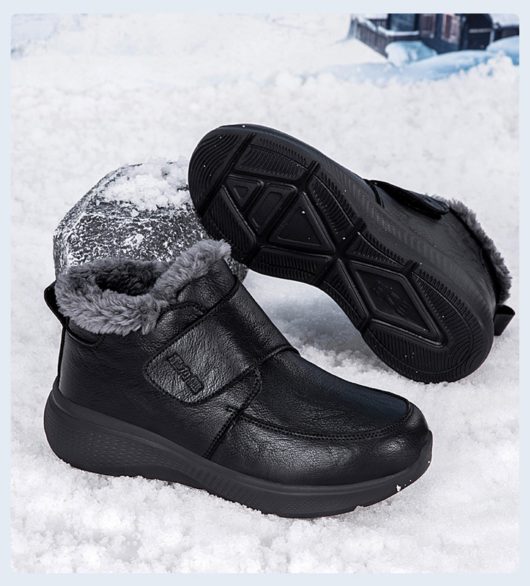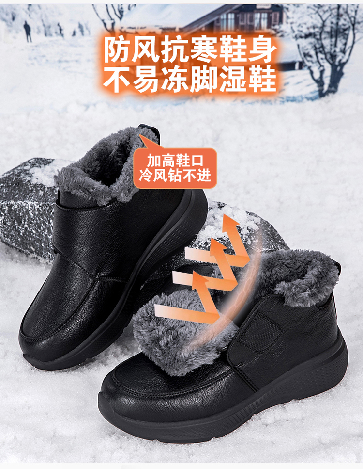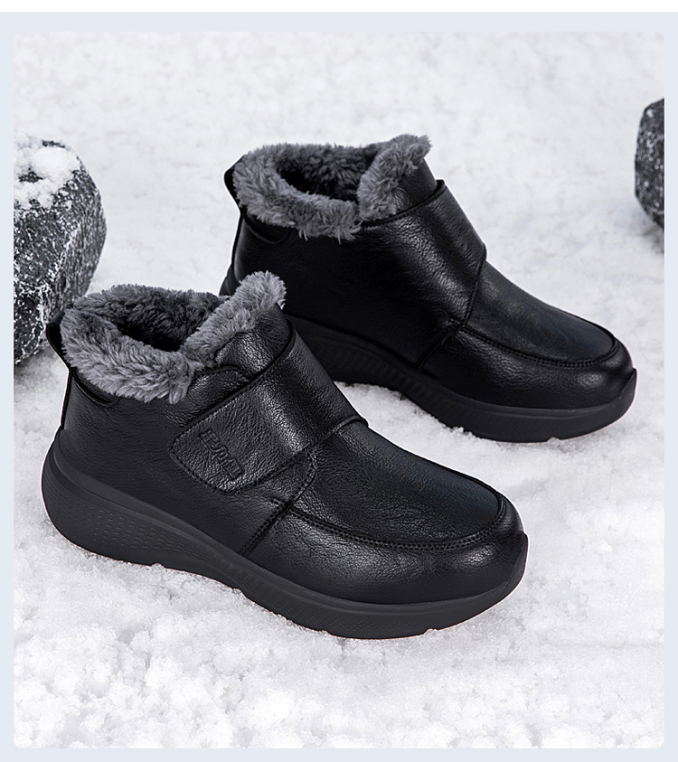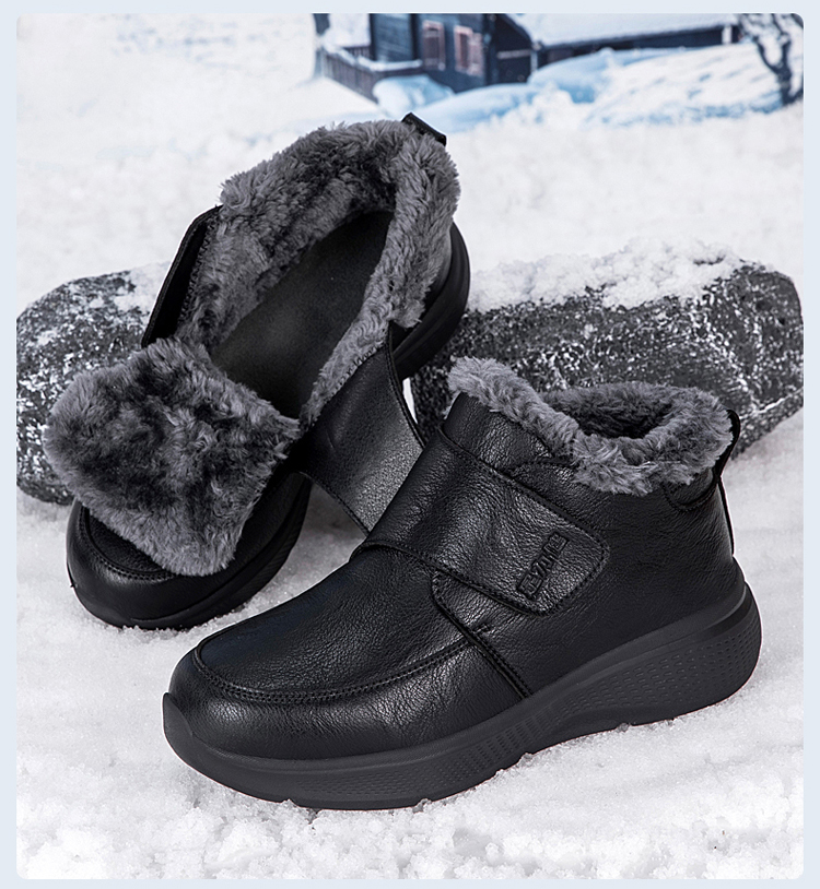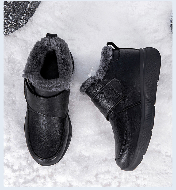 Footliger Elderly Women's Shoes Winter Fleece-Lined High-Top Shoes Warm Cotton Shoes Leather Surface Waterproof Non-Slip Middle-Aged and Elderly Mother's Shoes