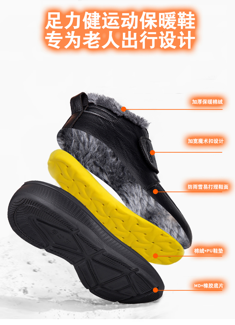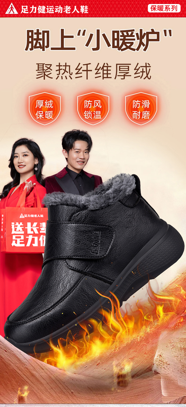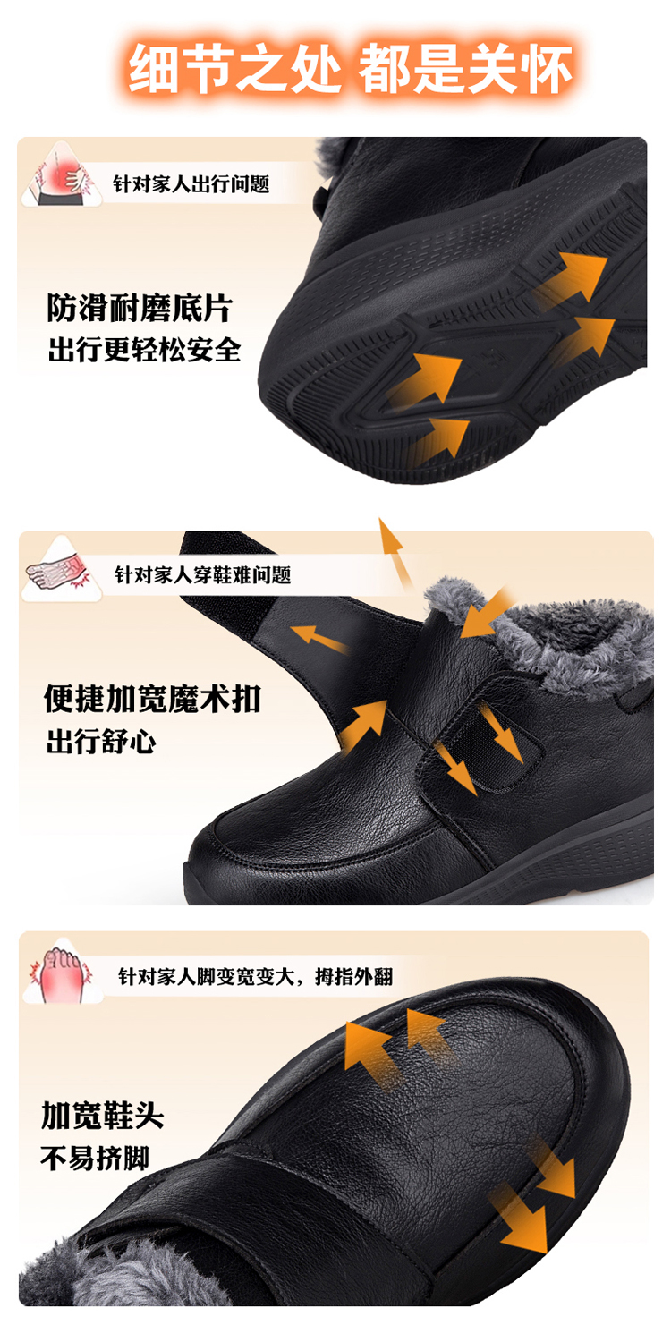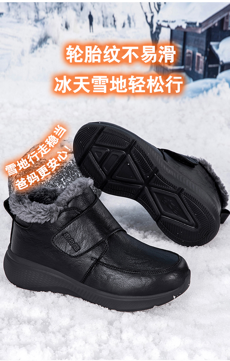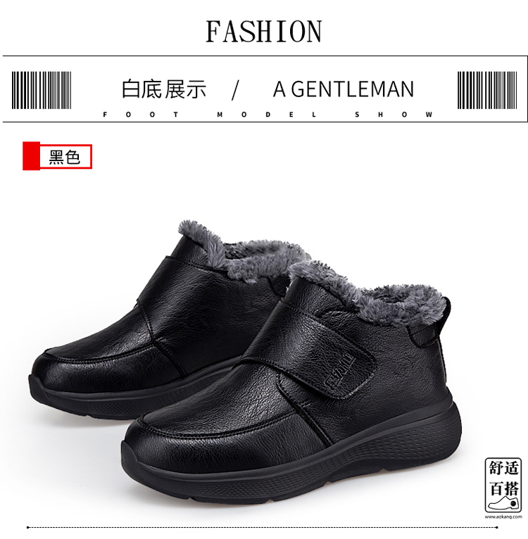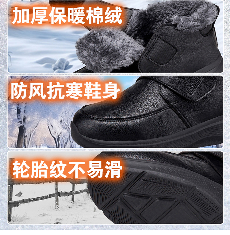 Footliger Elderly Women's Shoes Winter Fleece-Lined High-Top Shoes Warm Cotton Shoes Leather Surface Waterproof Non-Slip Middle-Aged and Elderly Mother's Shoes