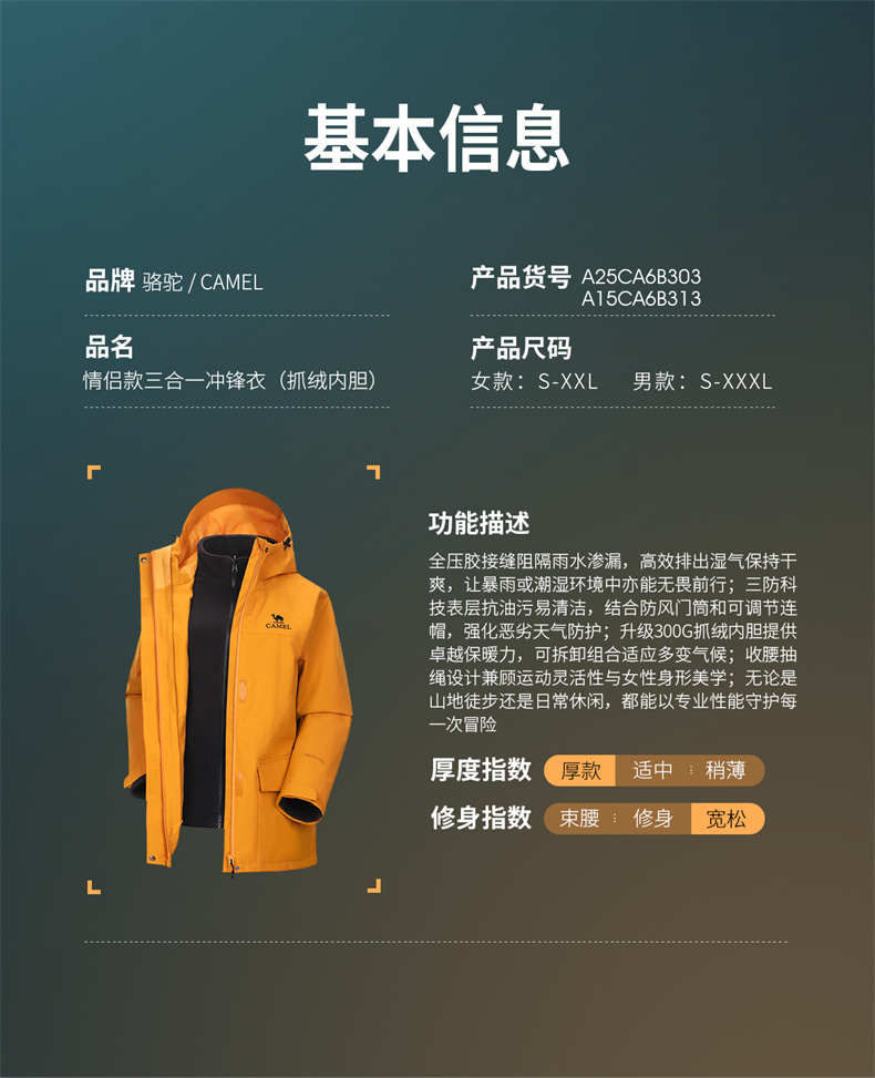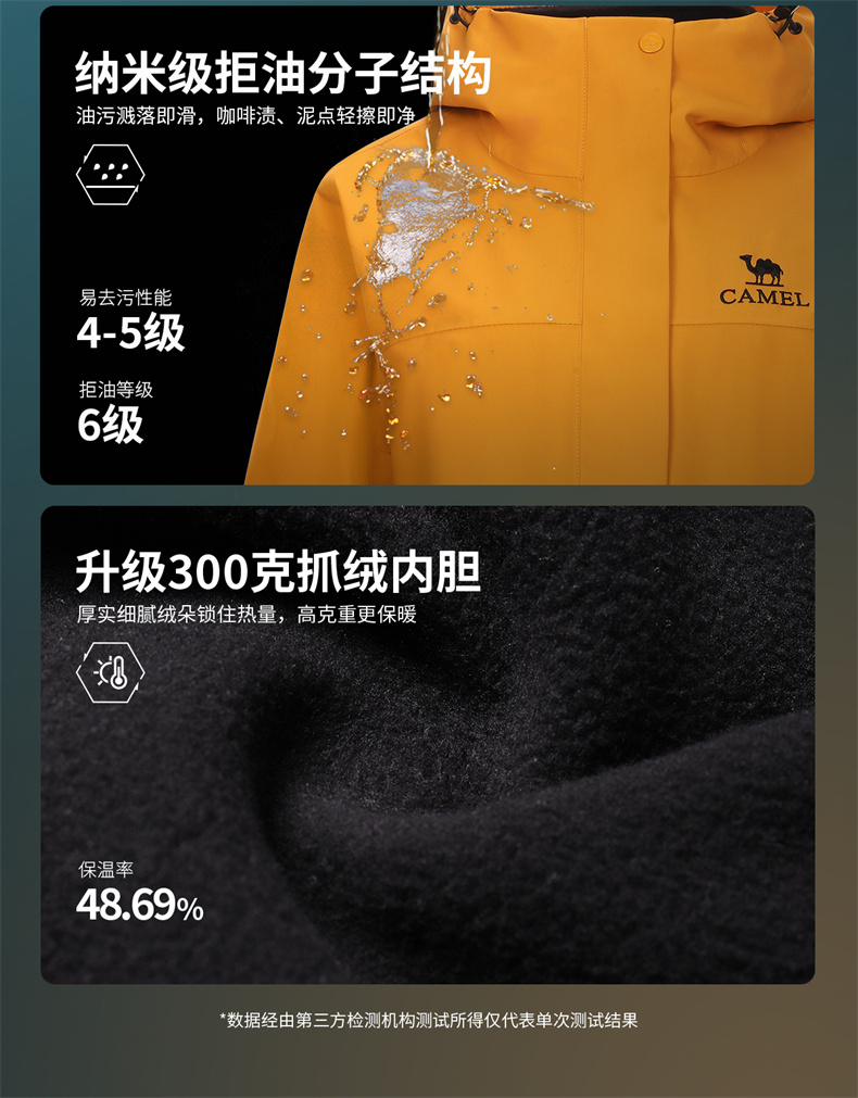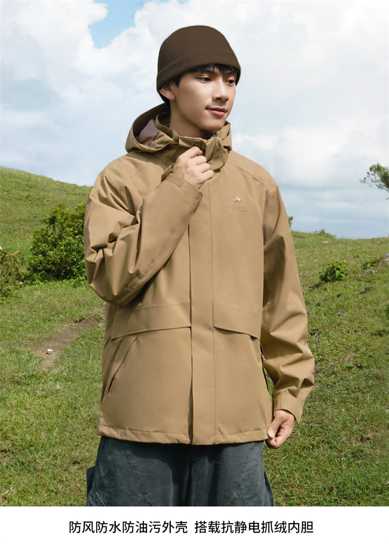 Camel Outdoor 3-in-1 Jacket for Men 2025 Winter New Style Fleece-Lined Thickened Mountaineering Jacket Windproof and Waterproof Coat