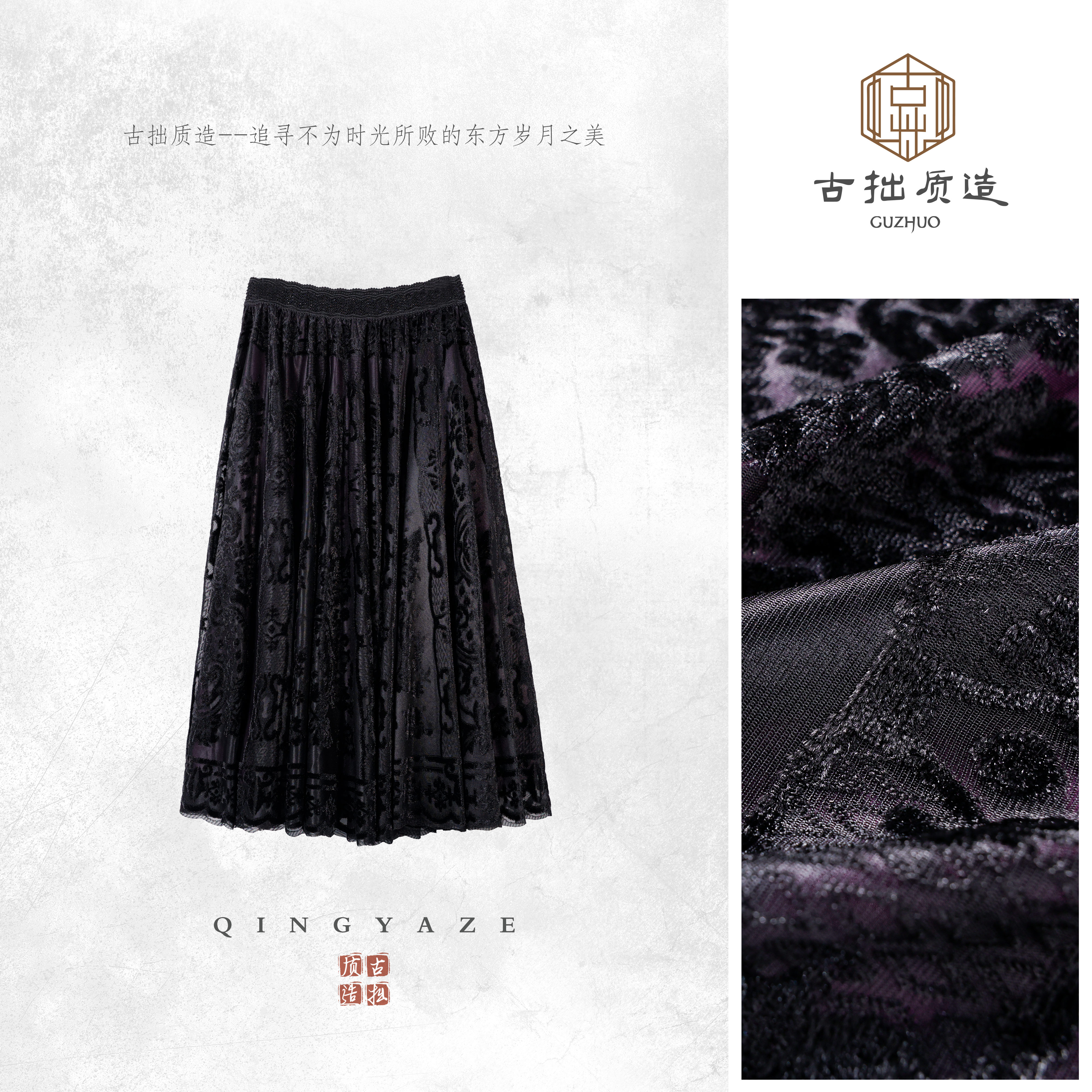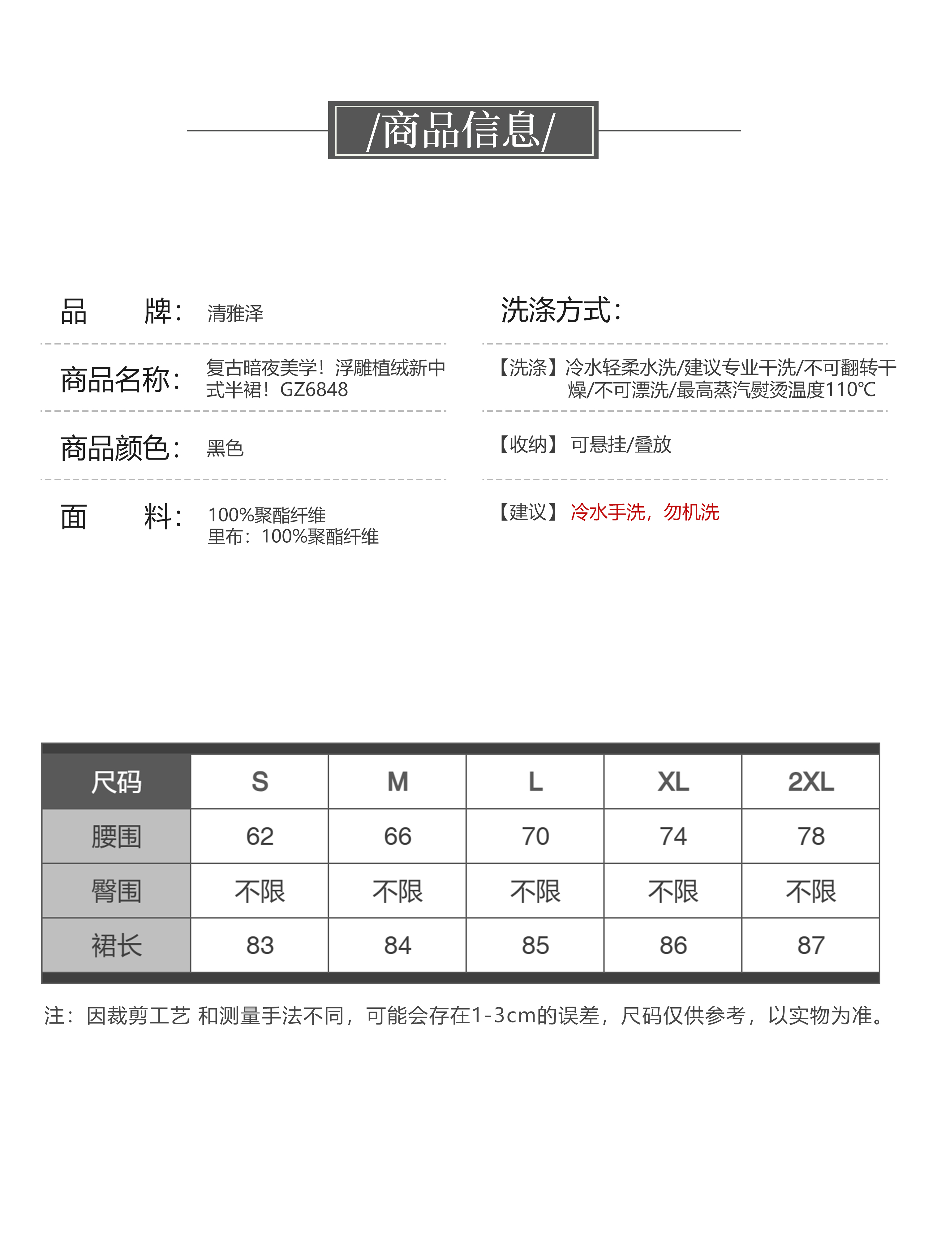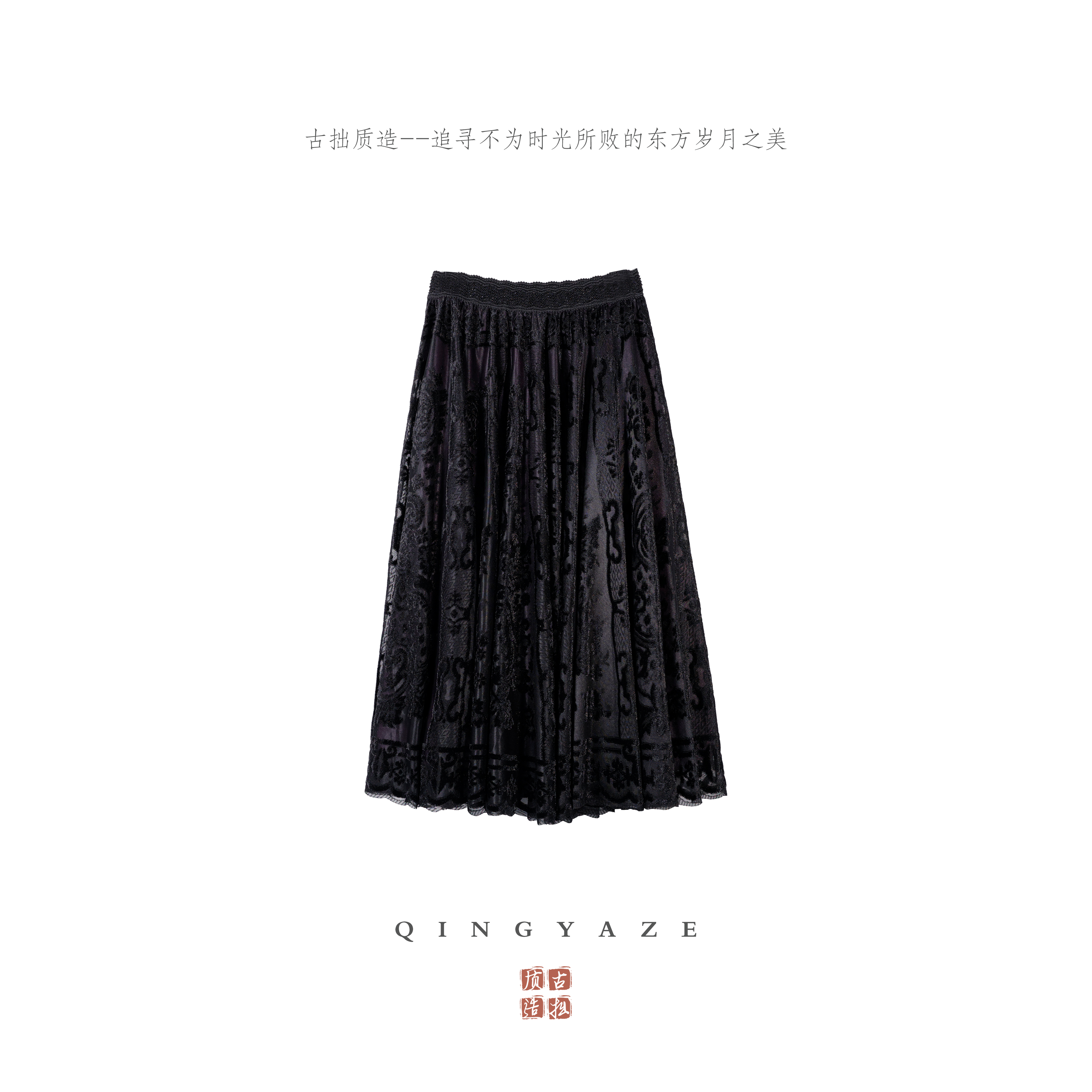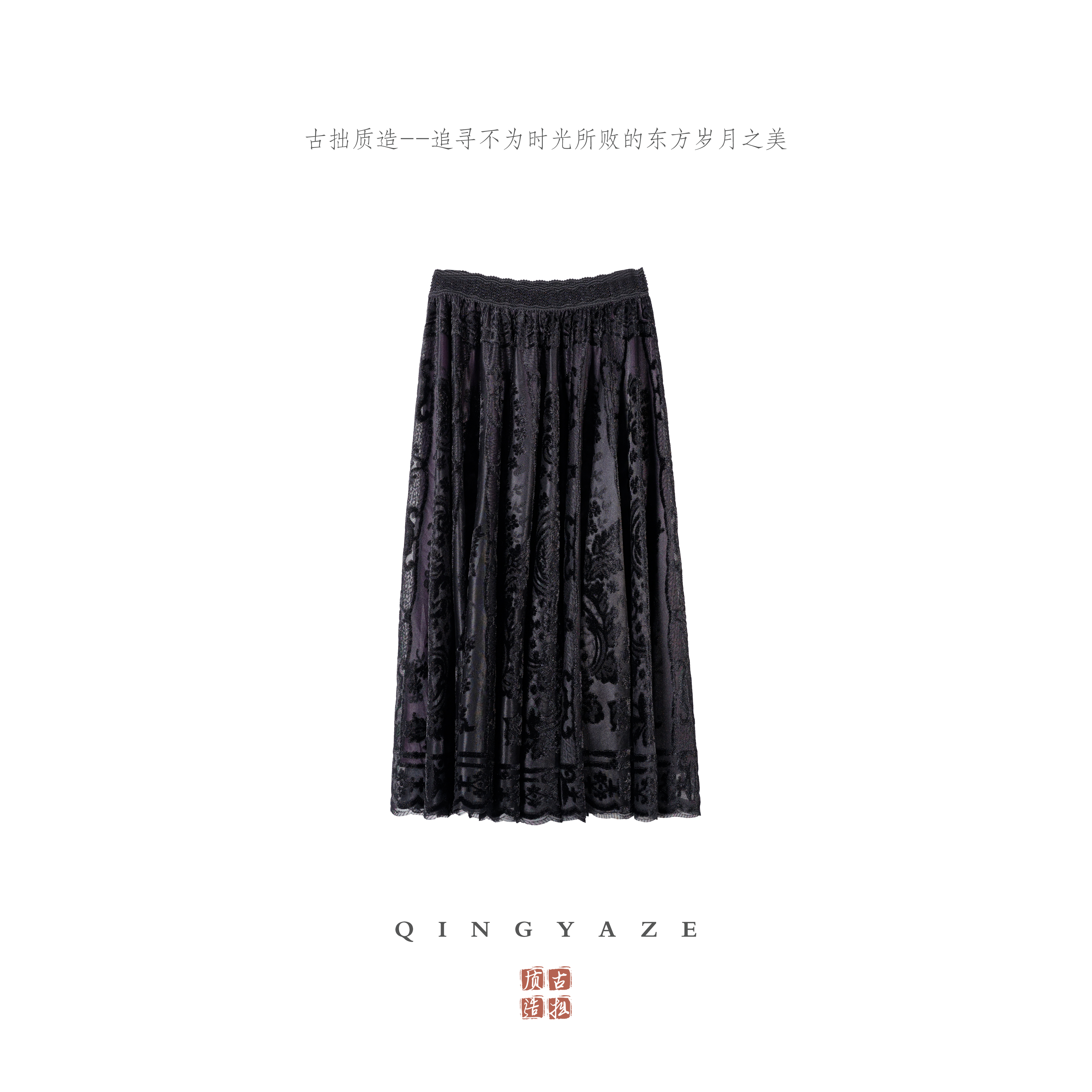 Retro Dark Night Aesthetics! Embossed Flocking New Chinese Style Skirt! Gz6848