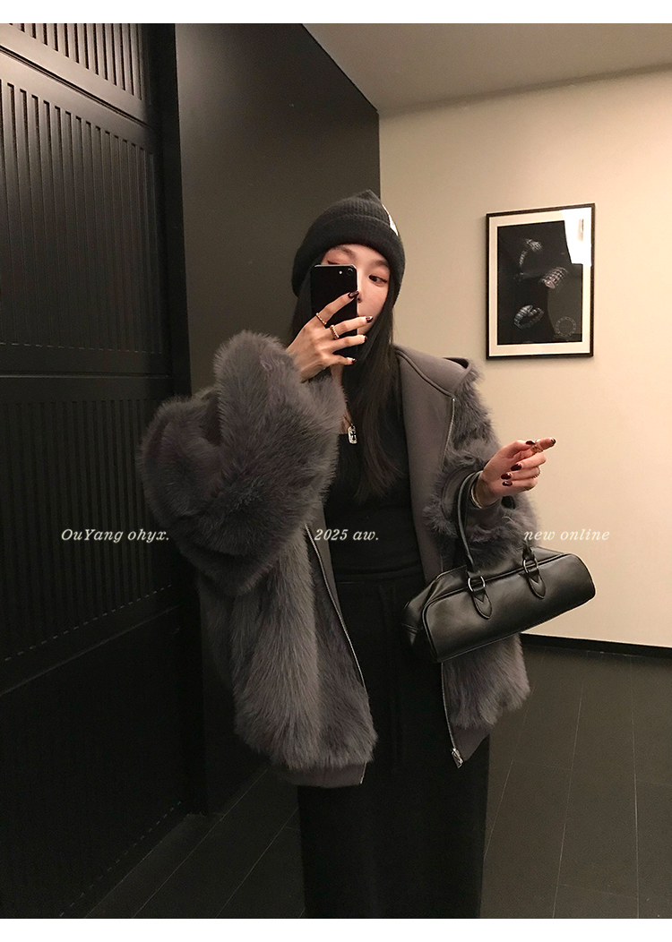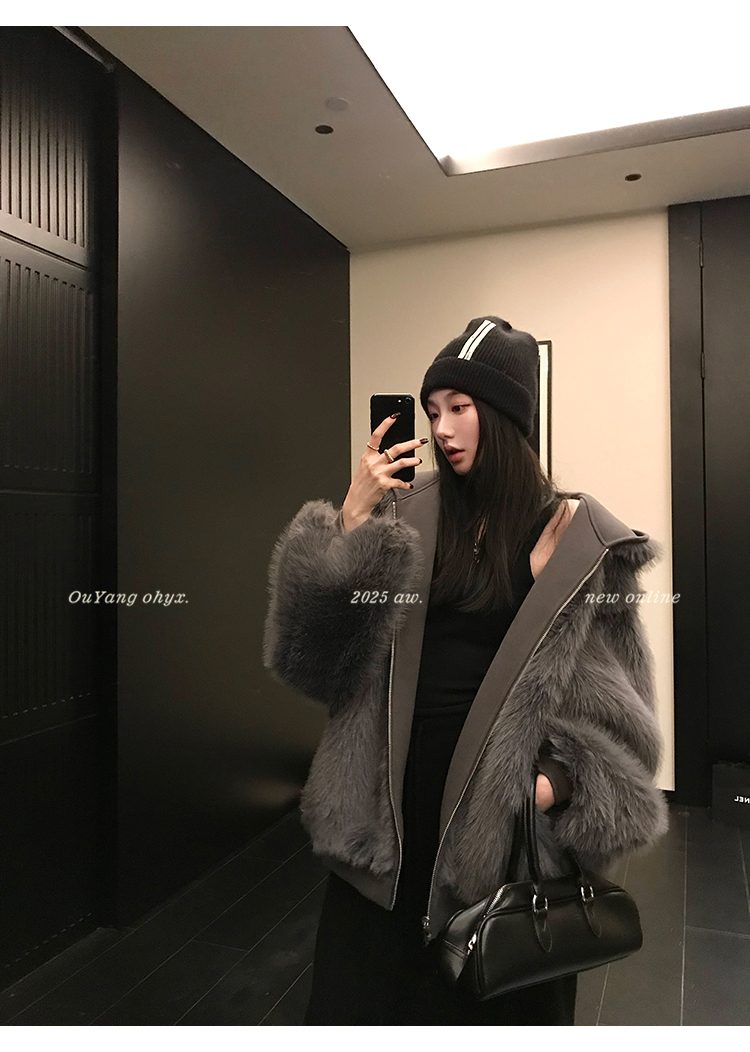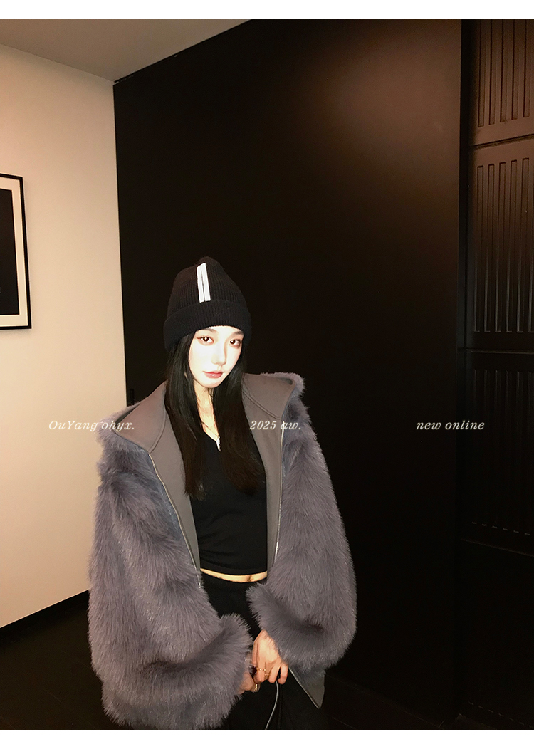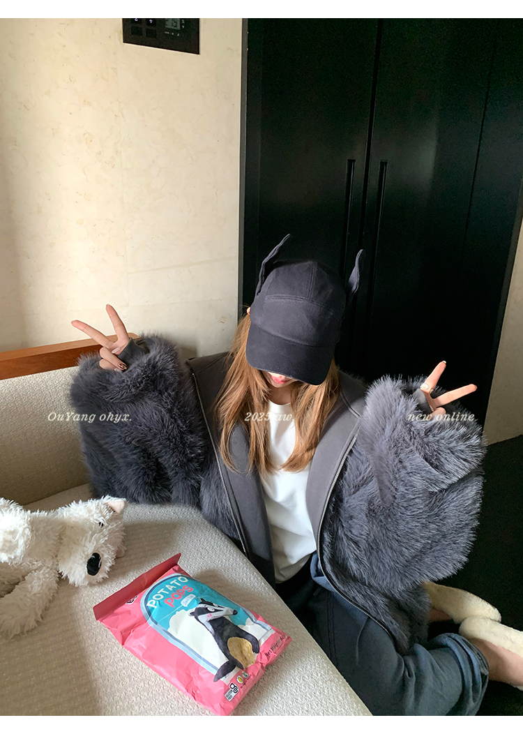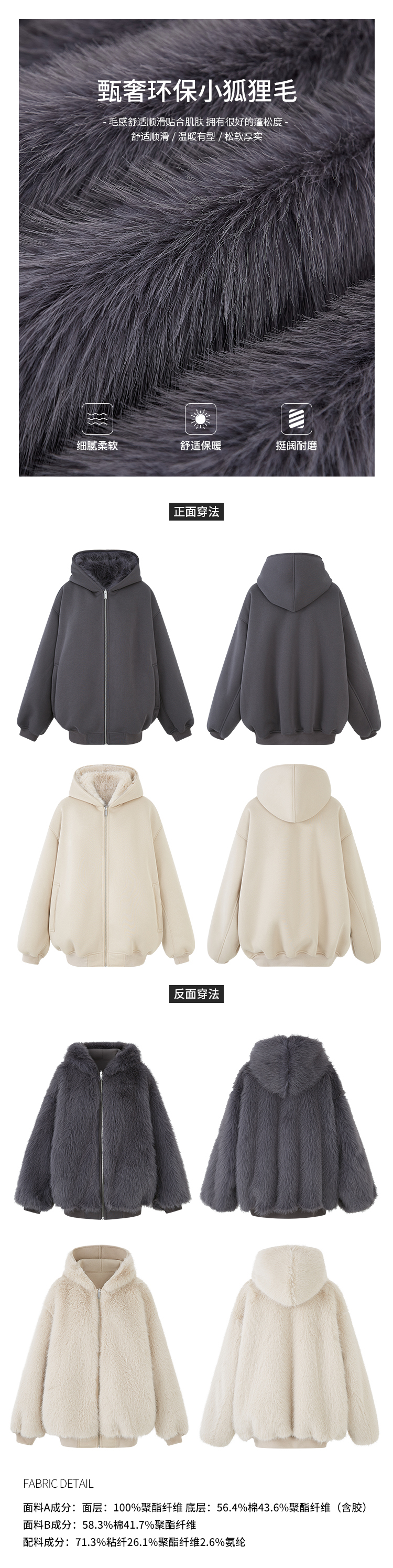 定纺180g柔软针织面料与配色寰葆小狐狸毛 双向融合