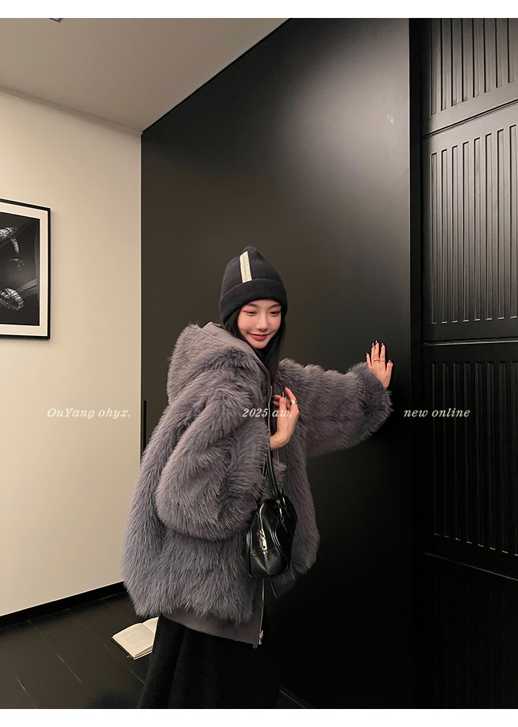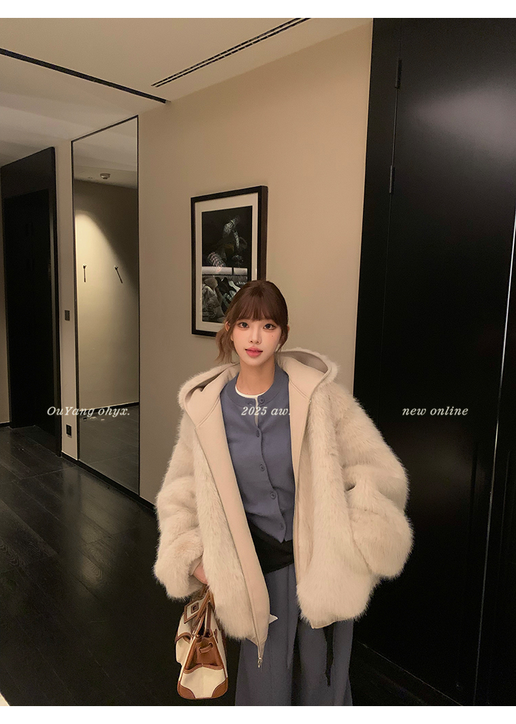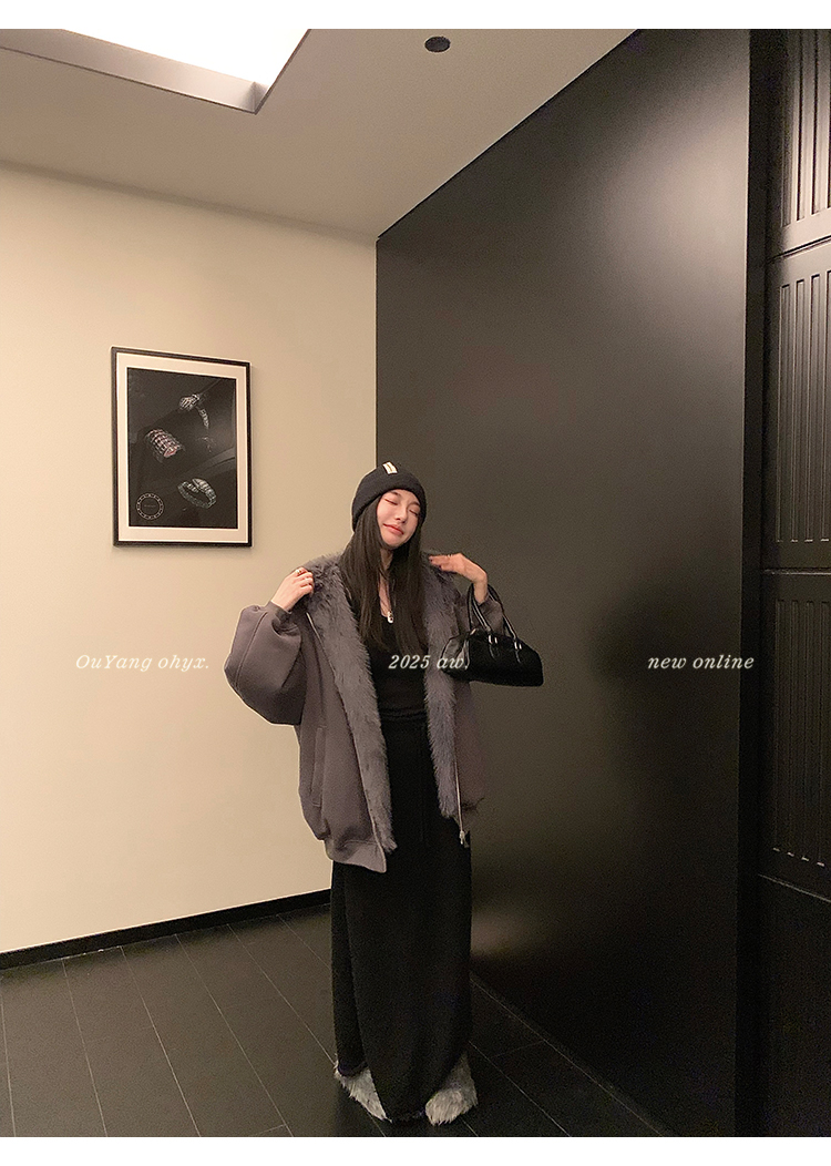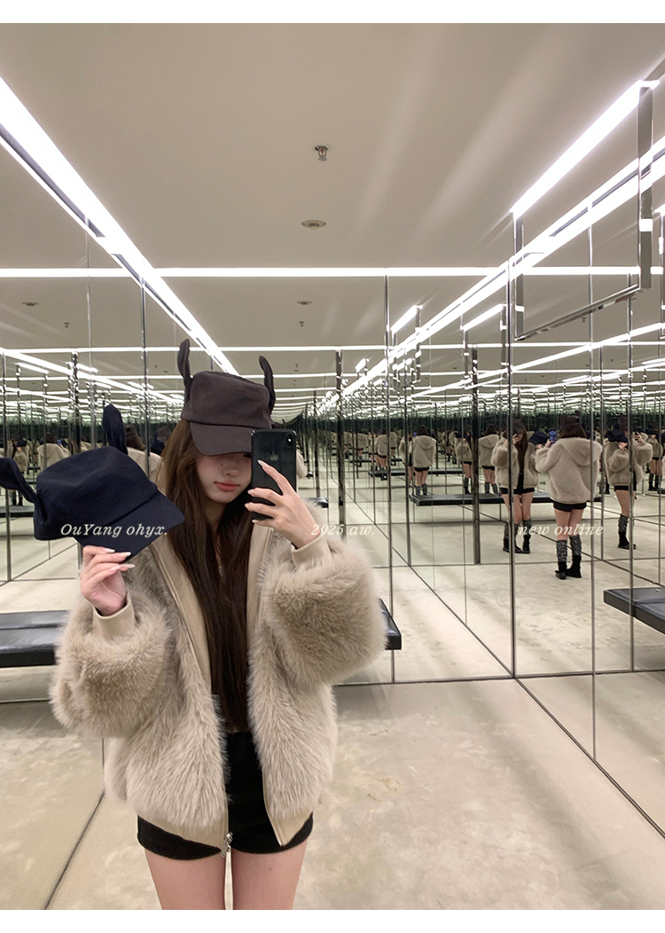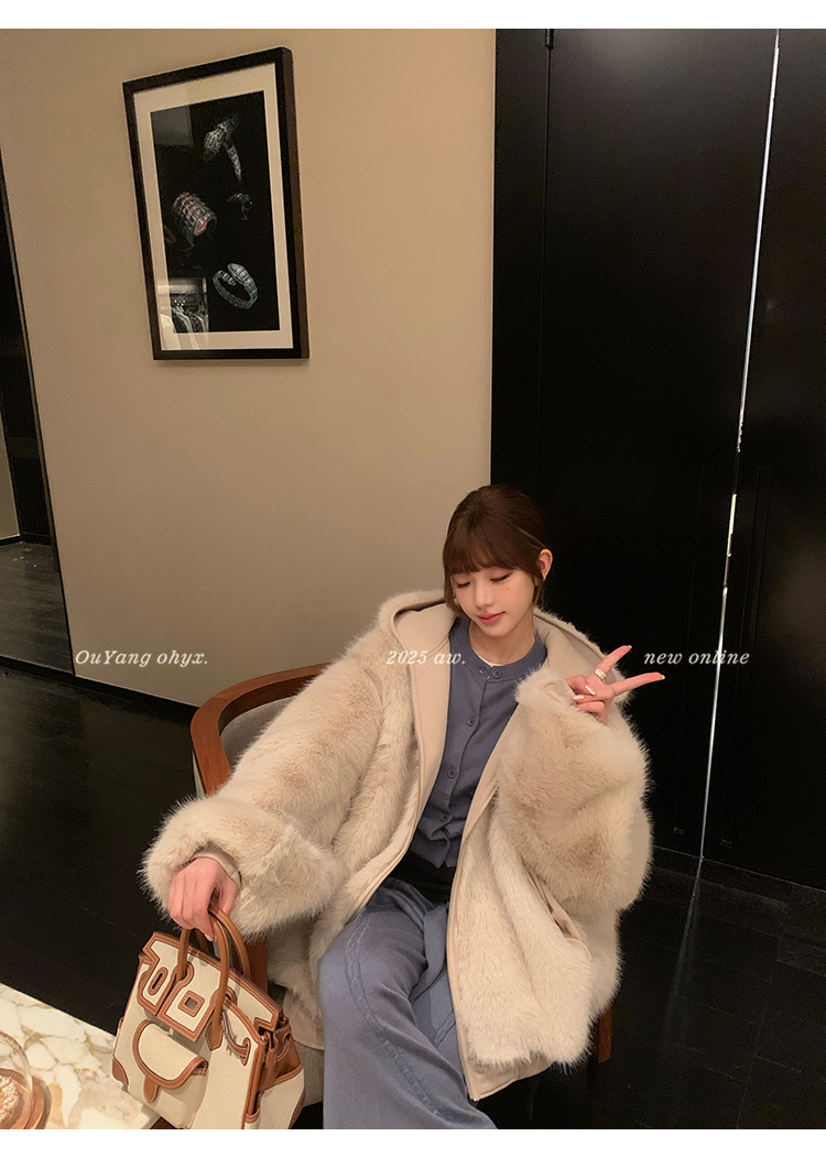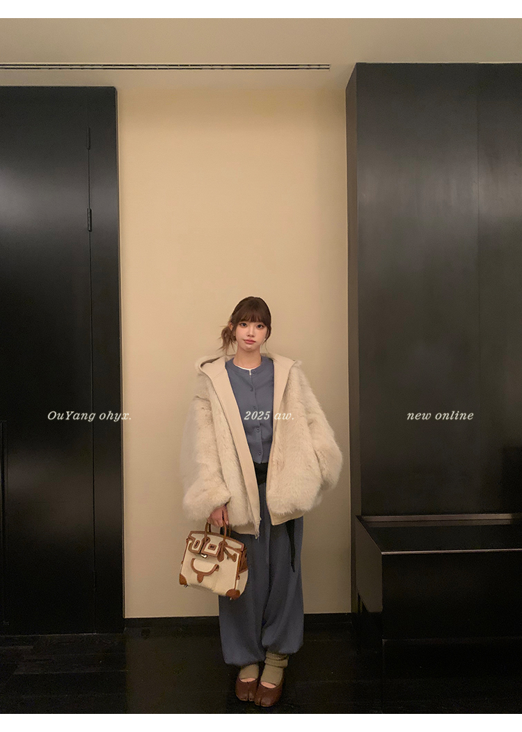 定纺180g柔软针织面料与配色寰葆小狐狸毛 双向融合
