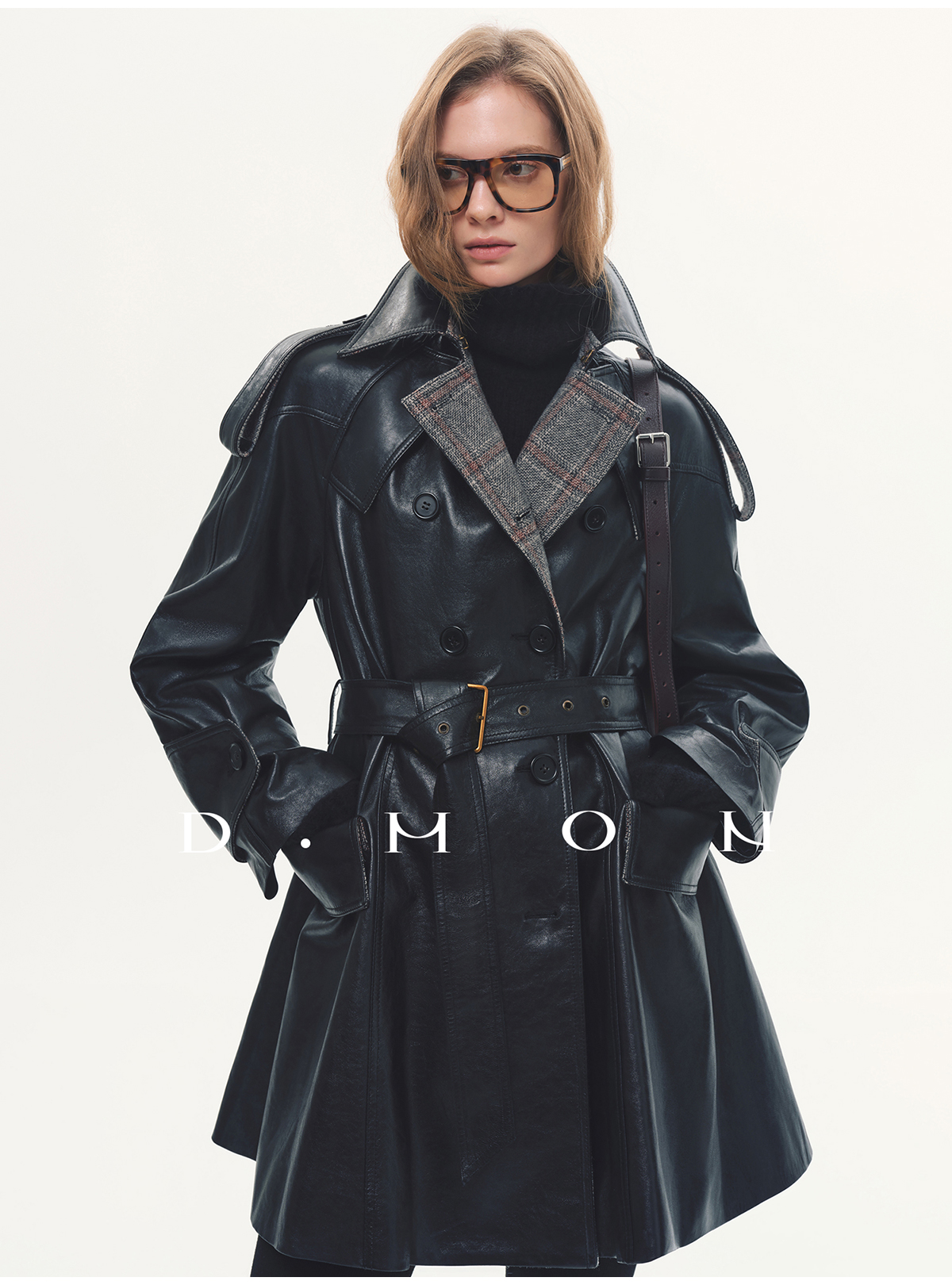 Dmon Fashionable Style_Chloe-Inspired British Imported Ultra-Luxury Top-Layer Goatskin Leather and Wool Blend Jacket